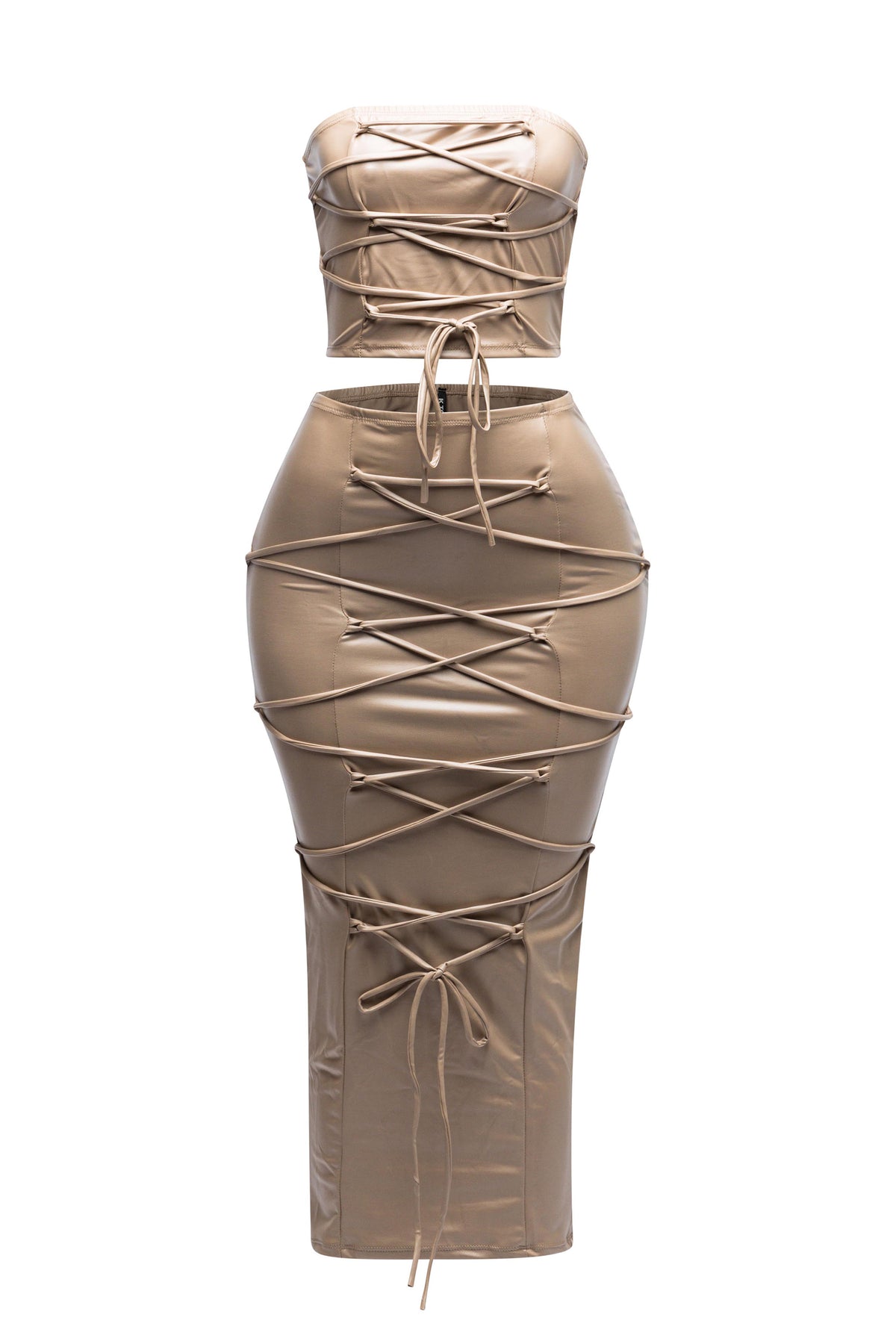 Lace up detailed tube top and maxi skirt set