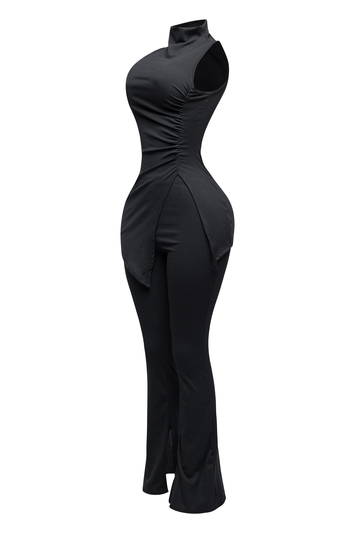 MOCK NECK SLIT TOP AND FLARE PANT SET