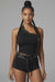 Admit One Studded Halter Short Set - BLACK