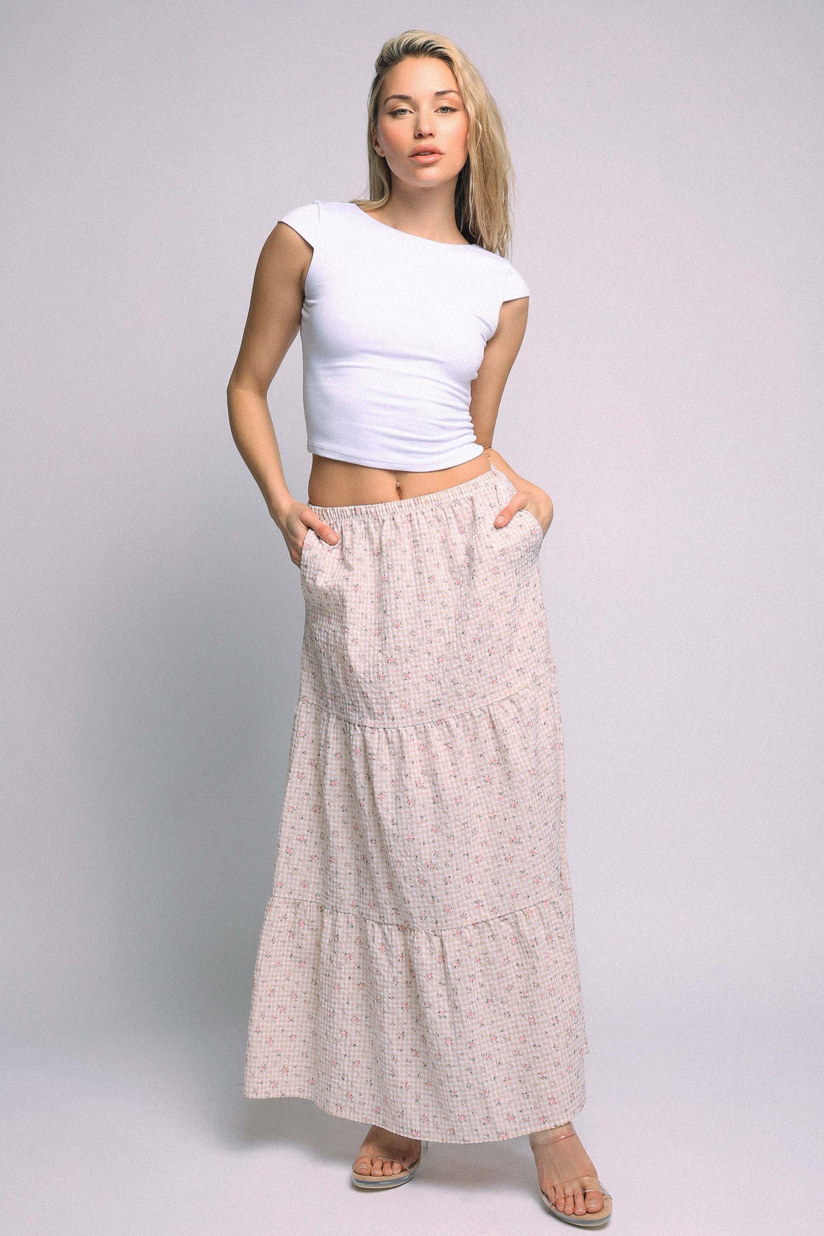 Floral Textured Tiered Maxi Skirt