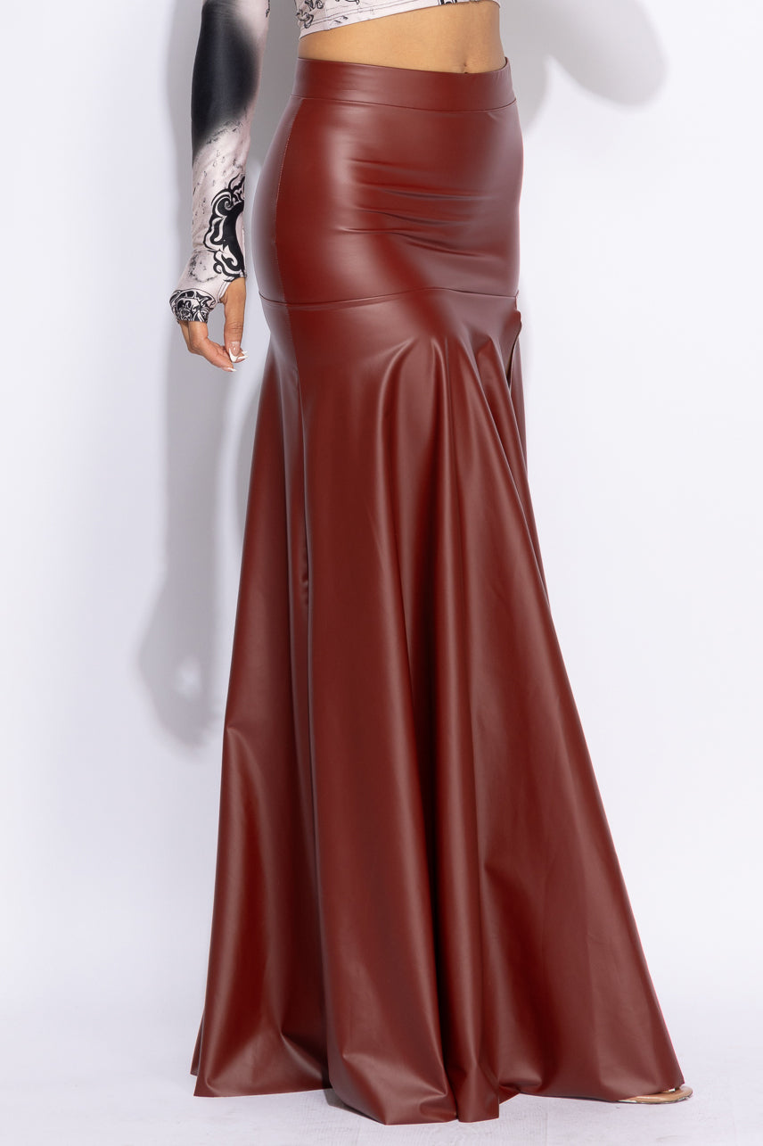 Matte PU maxi skirt with high slit