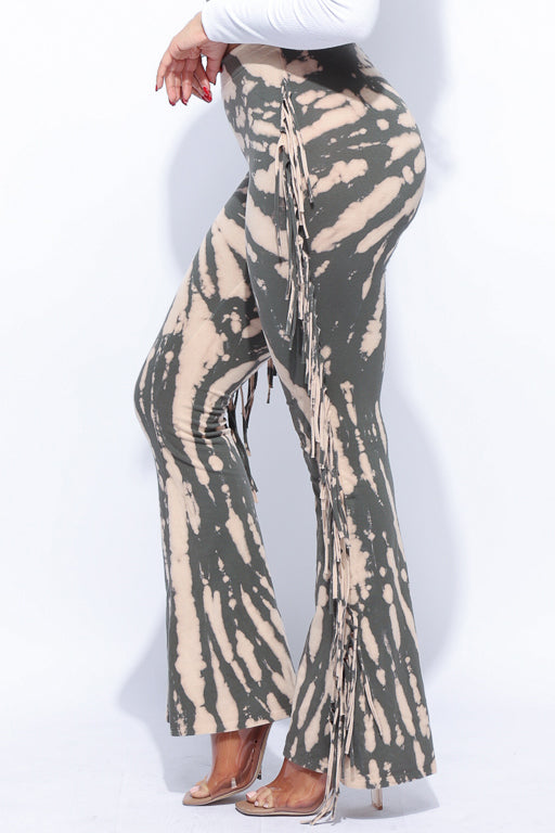 Tie dye fringe pants