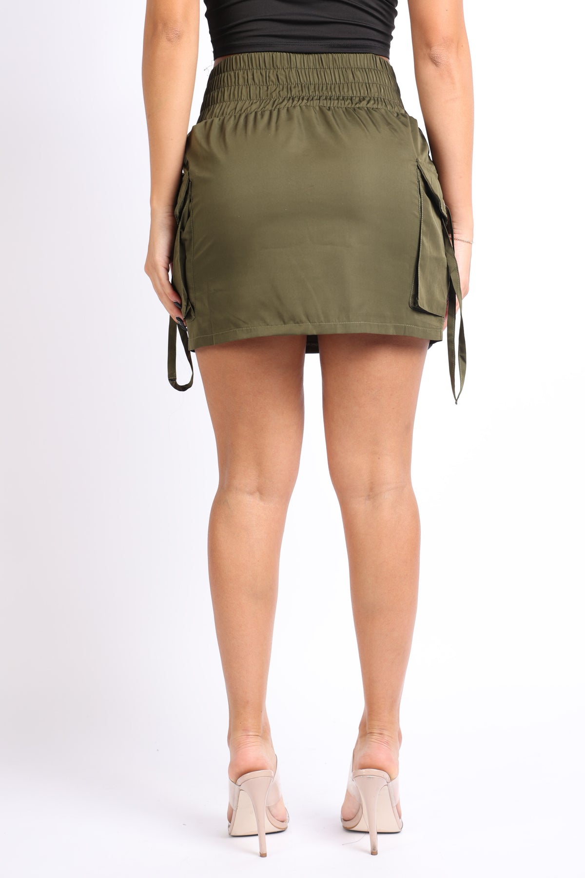 Wide waistband mini skirt with pockets