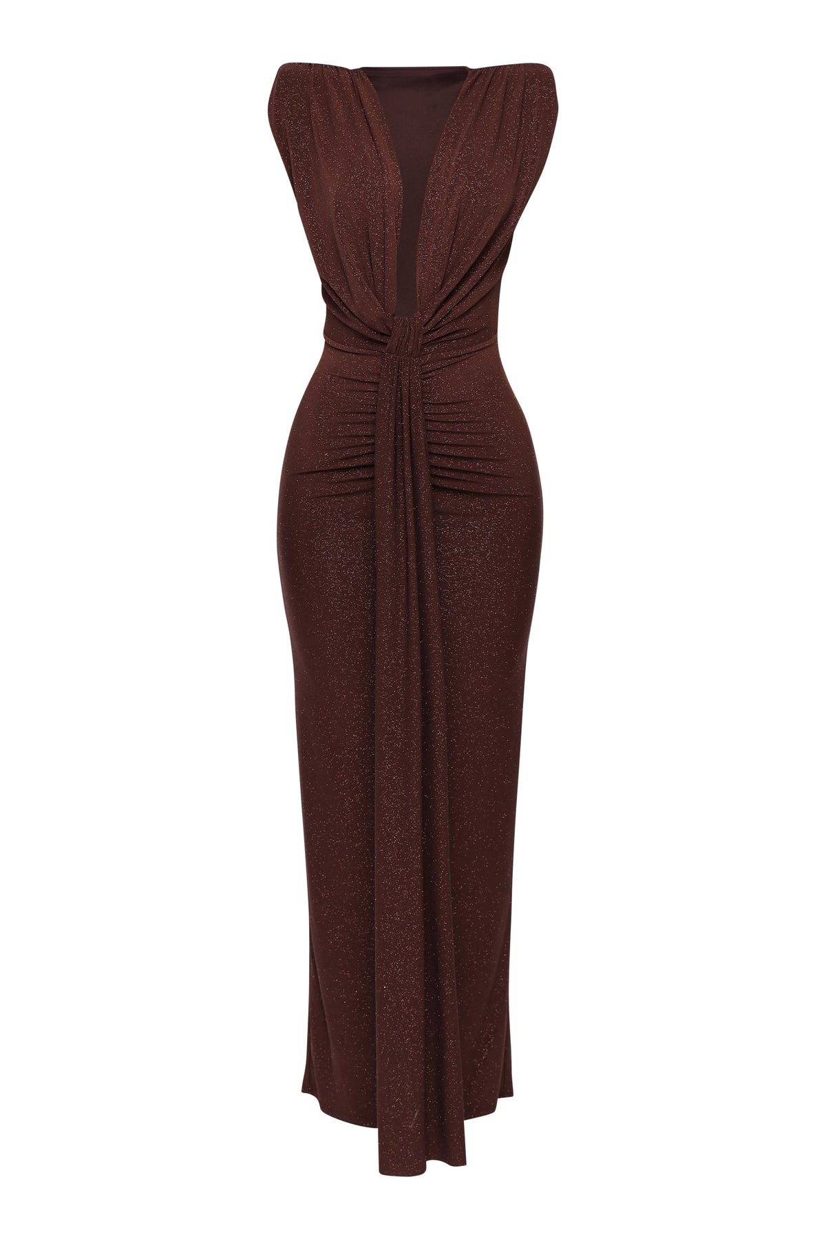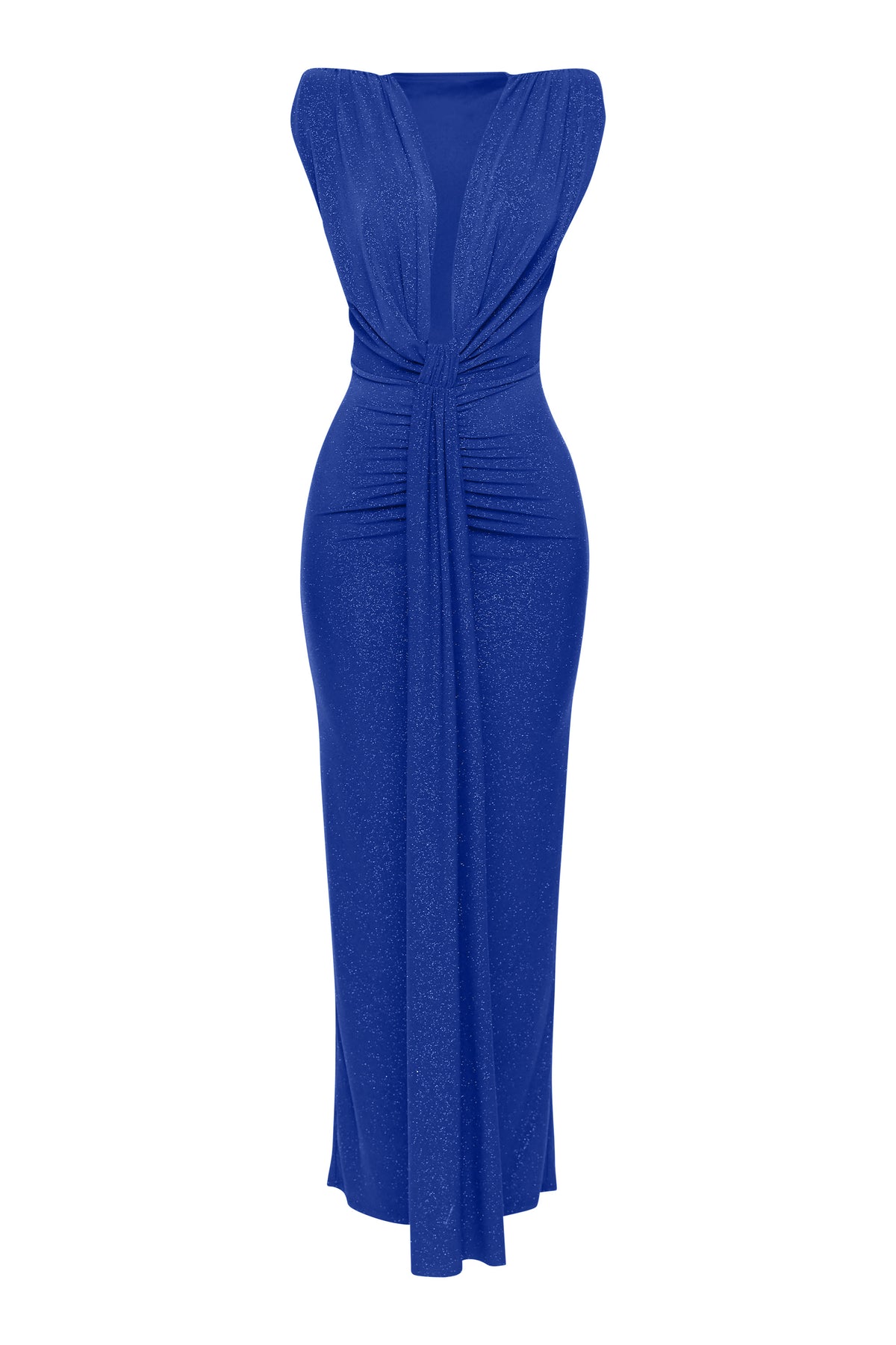Designed to command every room, the Drama Rush Drape Down Maxi Dress delivers bold elegance with serious attitude. Featuring a deep plunge V neckline, sculpting silhouette, and ultra-dramatic front drape detail, this body-hugging maxi is the epitome of glam. Shoulder pads amplify the structure, while a padded bust and stretchy fabric keep things confident and comfortable. Made for grand entrances, sultry exits, and unforgettable nights.