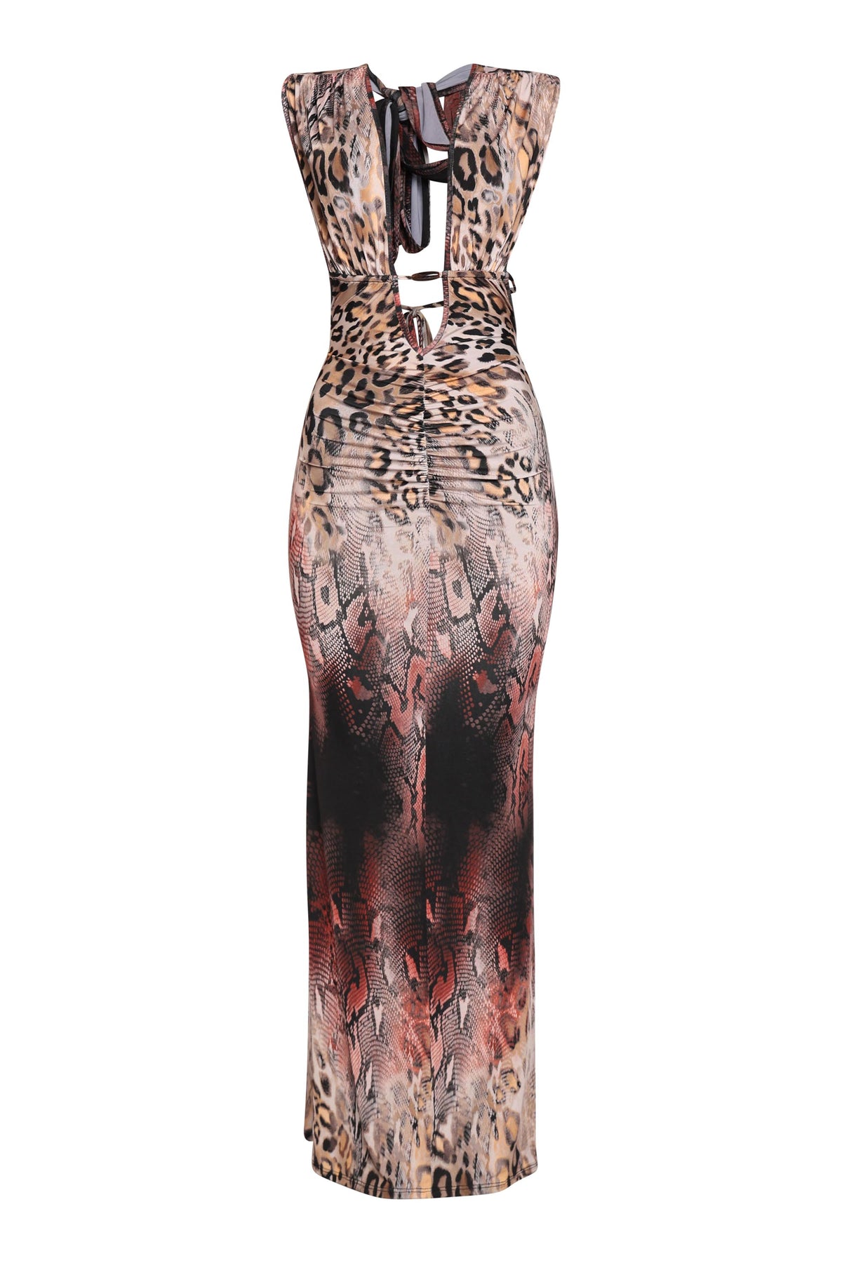 Turn heads in the Multi Animal Printed Halter Maxi Dress. Designed with a deep V-neckline and halter-off-shoulder style, this dress offers a daring yet elegant silhouette. The slim fit maxi length enhances your curves while the unique animal print ensures every piece is one-of-a-kind. Finished with trimmed details, this dress is perfect for evening events, parties, or nights out where you want to stand out.