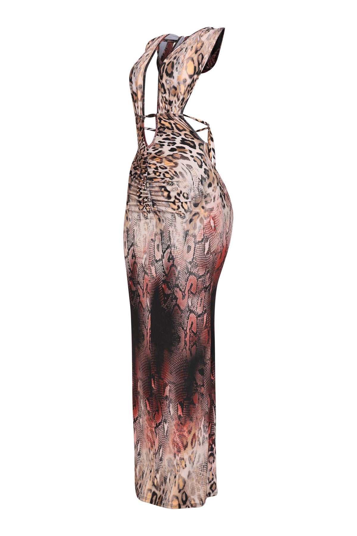 Multi Animal Printed Halter Maxi Dress