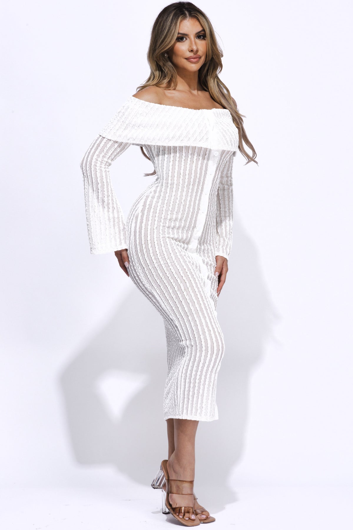Ruffled fabric off shoulder midi dress with flared sleeve