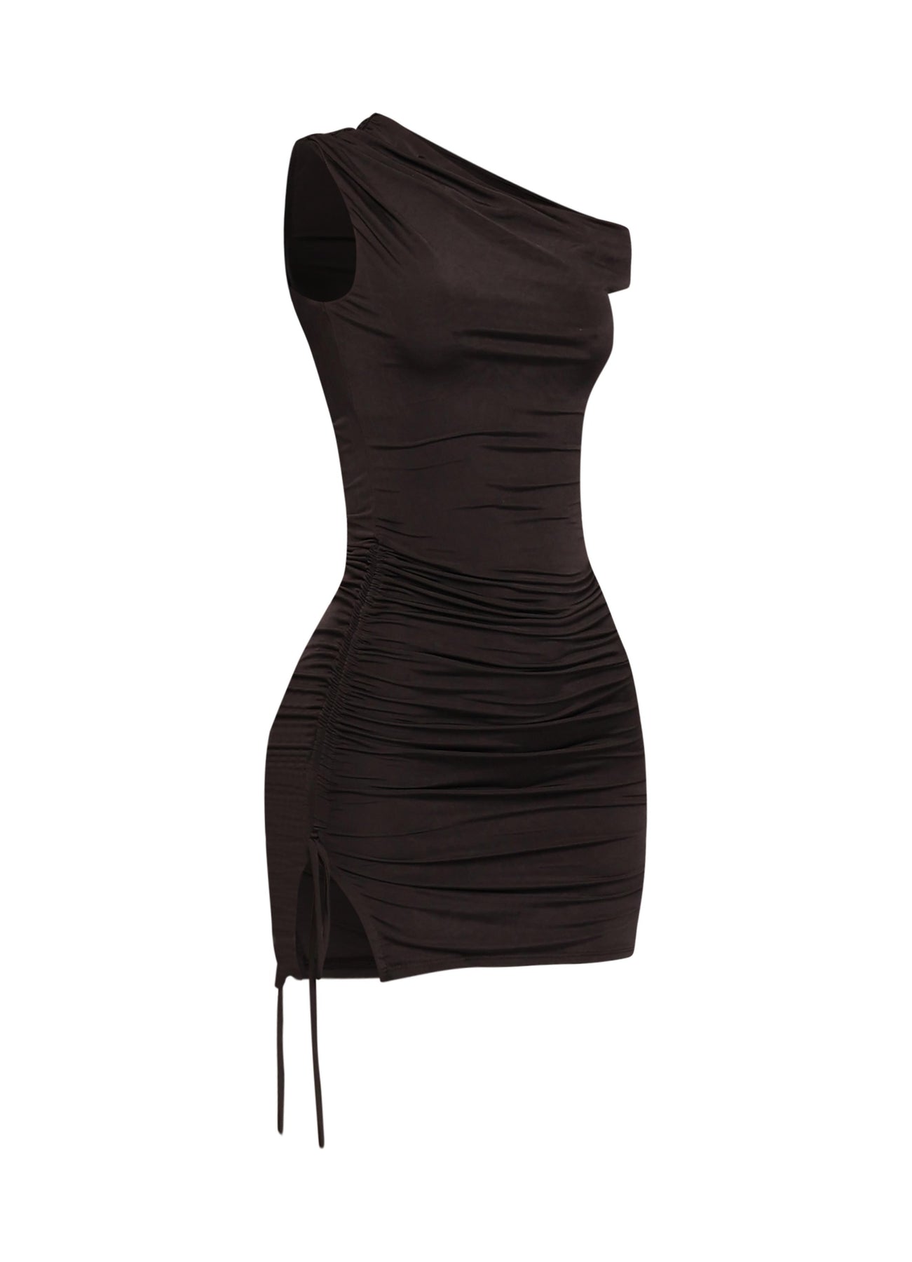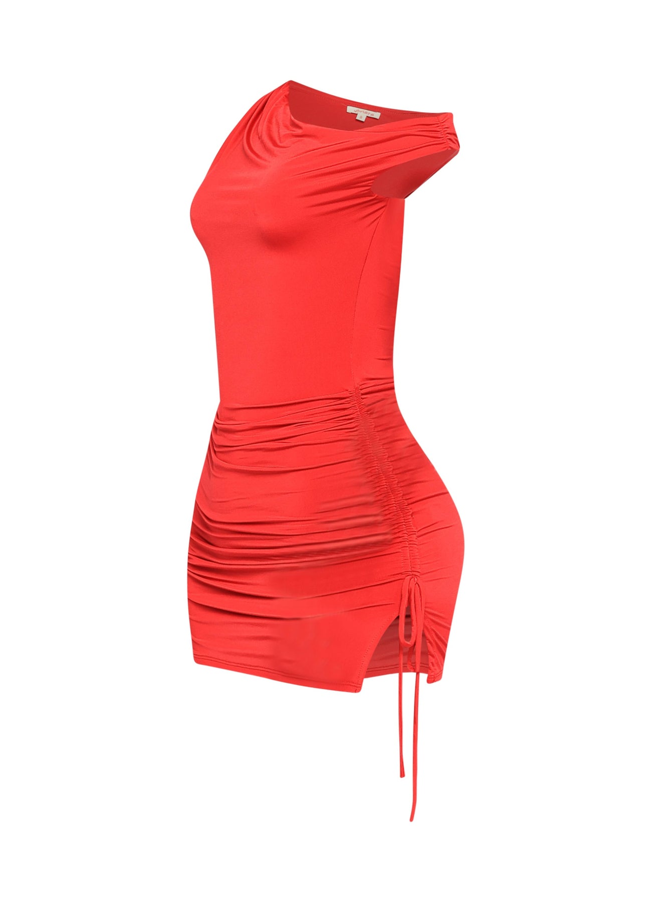 Crush Hour Asymmetrical Ruched Mini Dress.