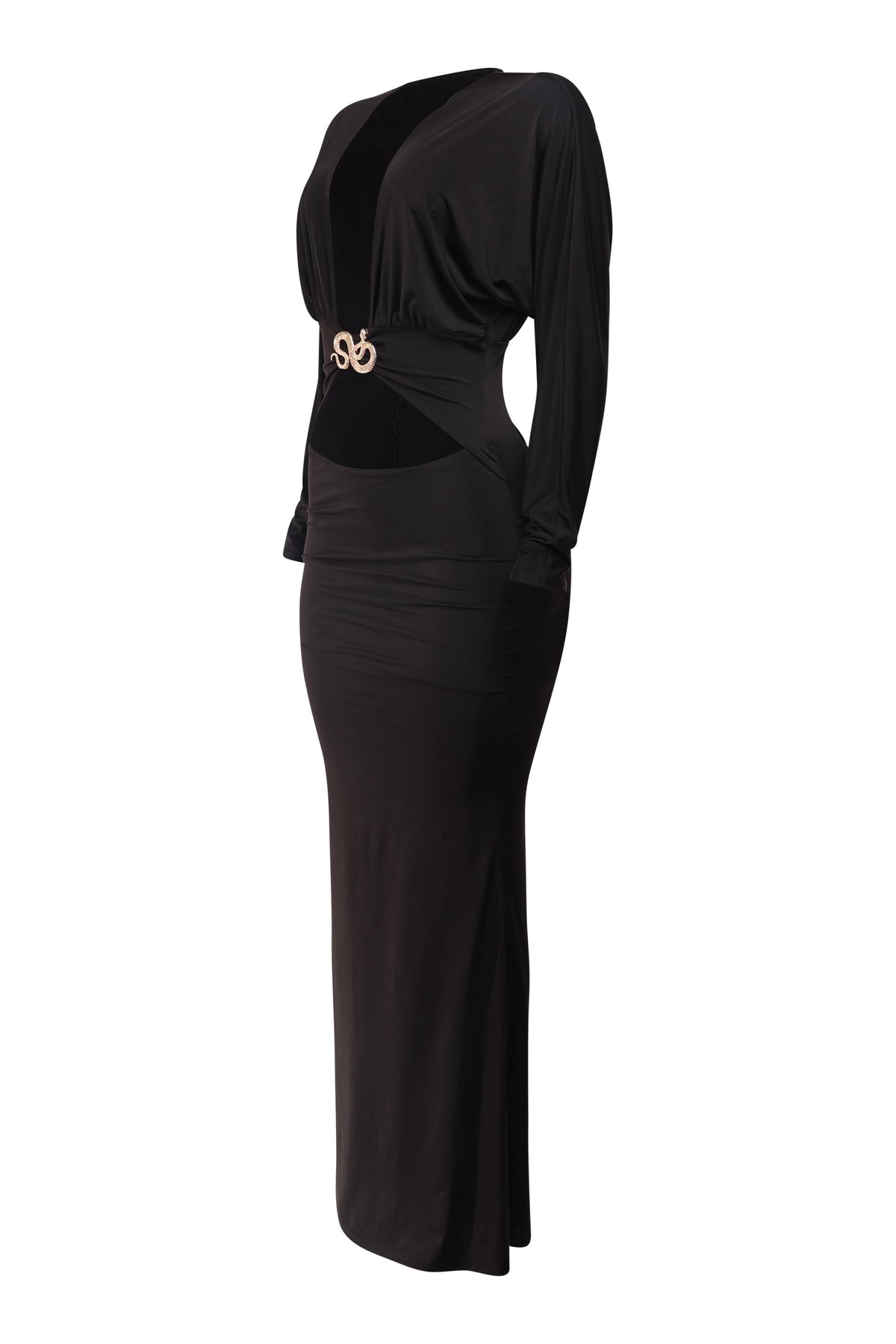 Own every entrance in the Snake Charmer Plunge Cutout Maxi Dress—a dangerously sexy silhouette with bold energy and undeniable edge. This sleek, slim-fit stunner features a plunging V neckline, dramatic batwing sleeves, and a sculpted waist cutout trimmed with a gleaming snake-inspired front buckle. The flared hemline brings just the right touch of drama, while the stretch fabric hugs in all the right places. Perfect for a night out, date night, or red-hot party moment. Available in heat-bringing red, sultry black, and luxe mocha brown.