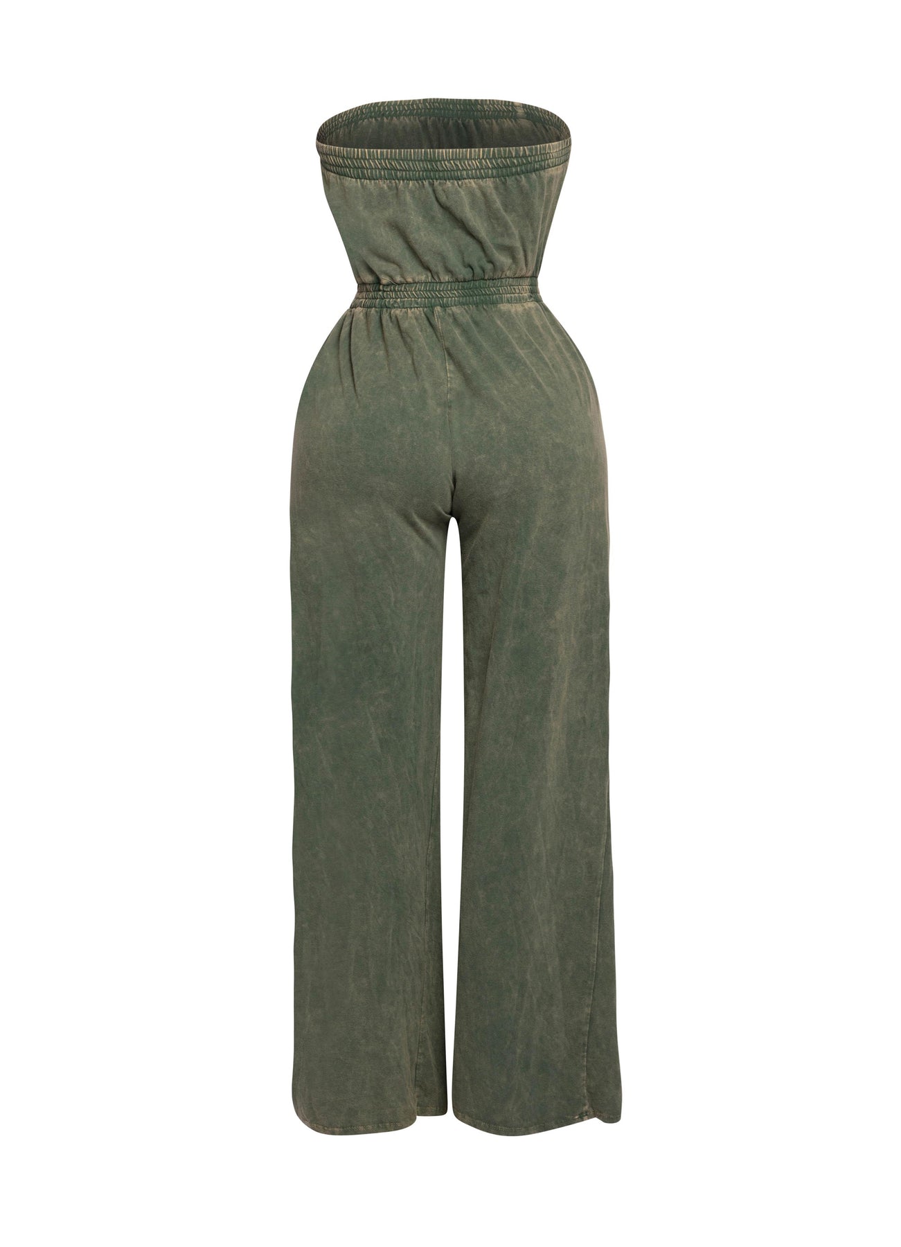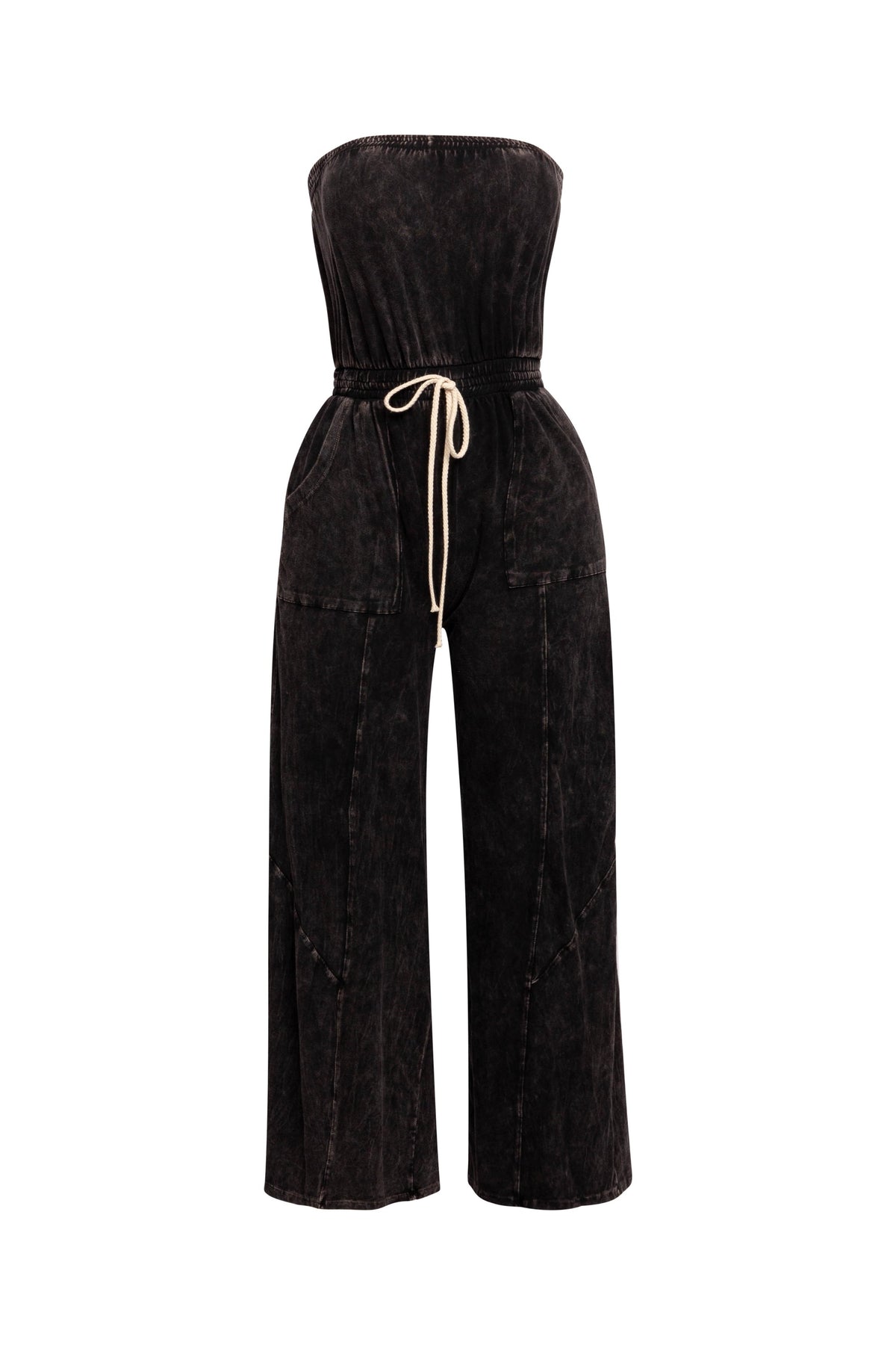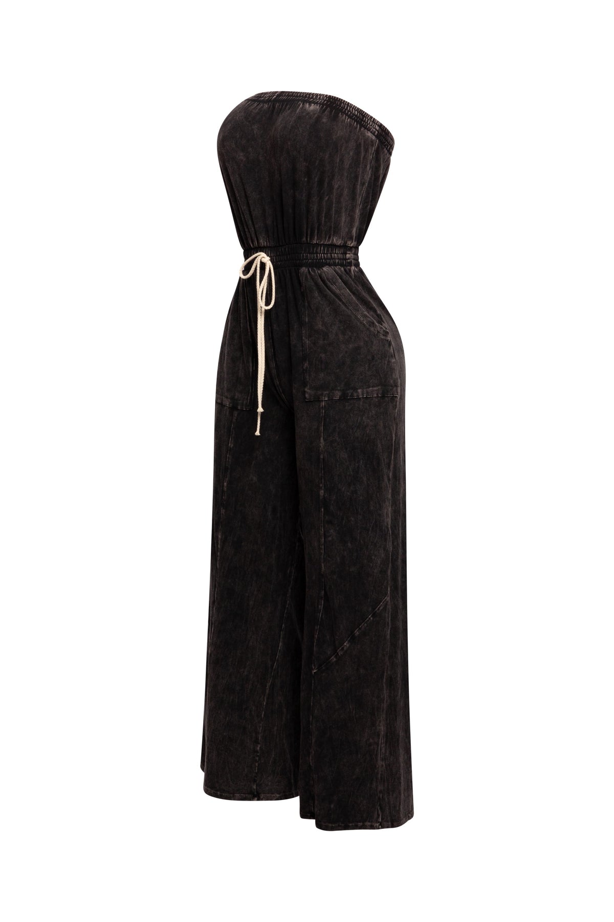 Mineral washed strapless wide leg jumpsuit