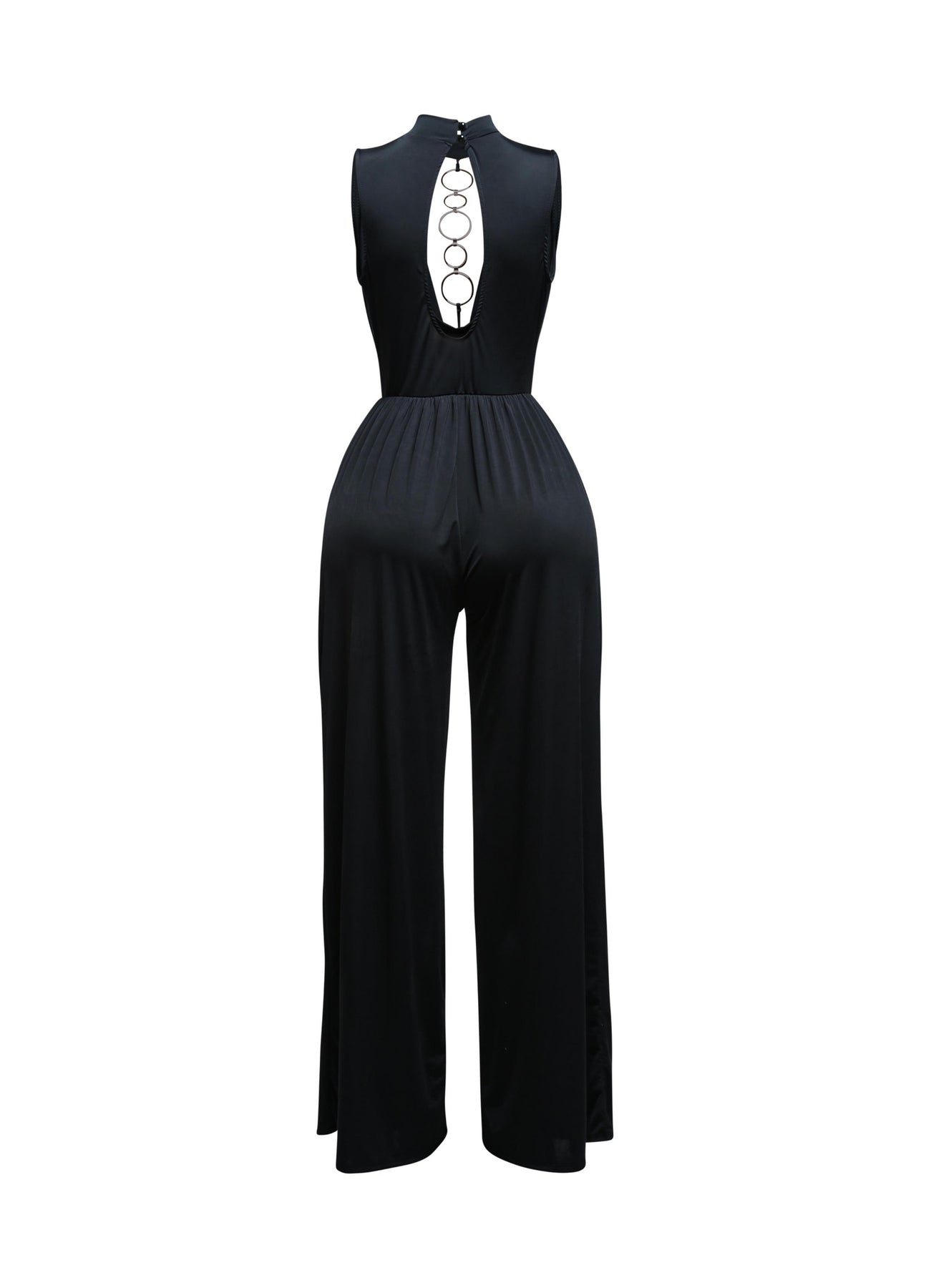 Mock neck cowl front wide leg jumpsuit