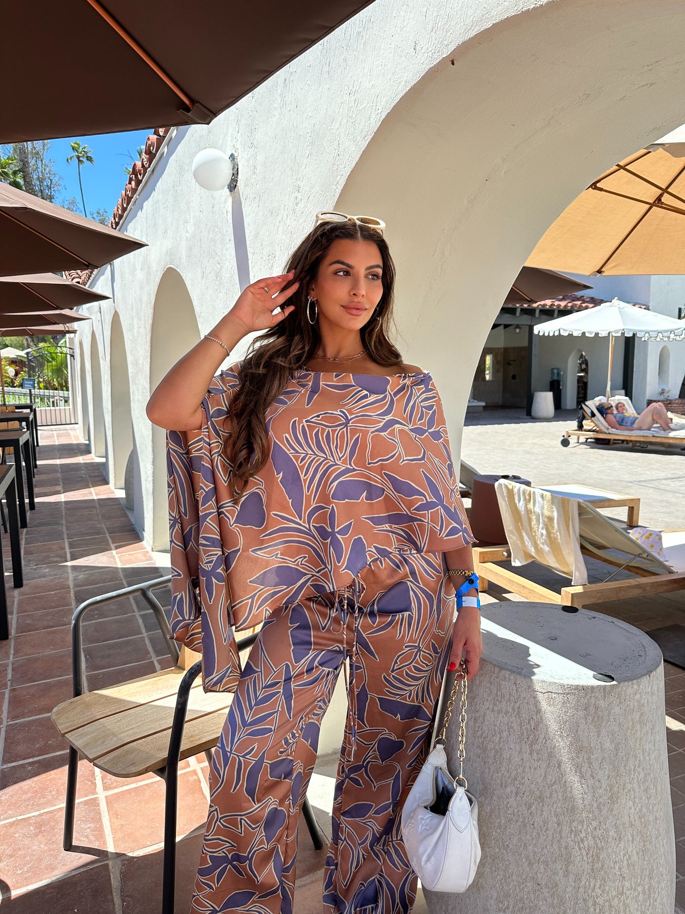 Step into elegance with our Satin One-Shoulder Flowy Set. This stunning ensemble features a one-shoulder top with a relaxed, flowy fit and wide-leg pants. The vibrant patterns and luxurious satin fabric make it perfect for both casual and formal occasions.