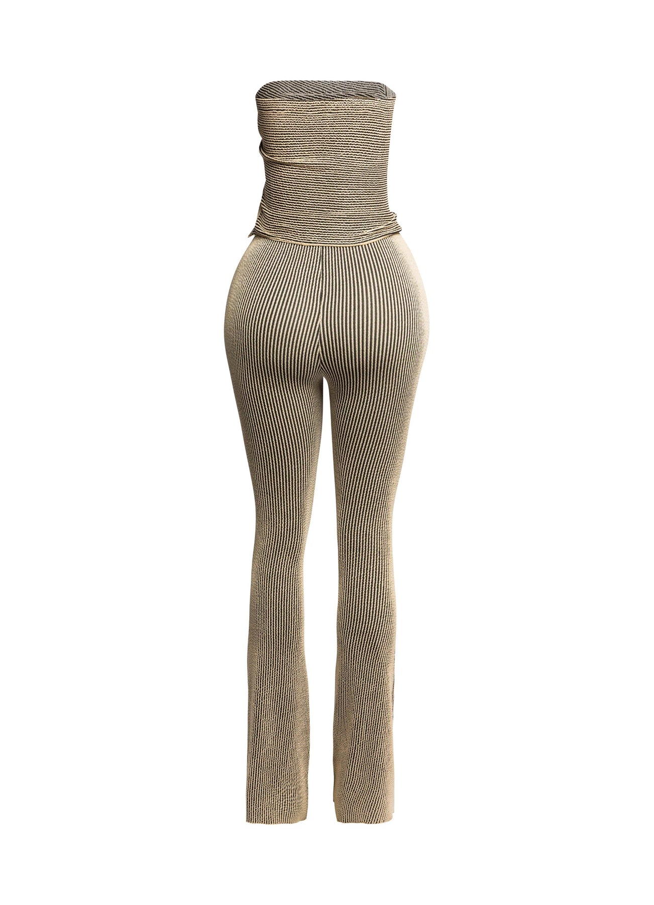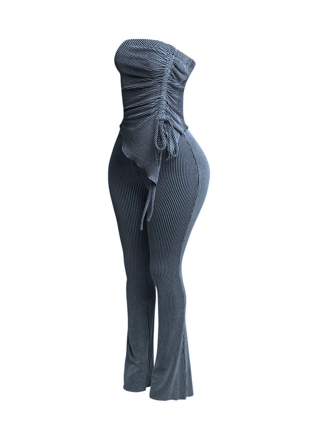This chic and stylish jumpsuit is designed to highlight your curves with a ruched bodice and flowing, flared legs. The strapless design and unique side tie detailing make it perfect for a night out or a special event. Available in a striking striped pattern, this jumpsuit offers a bold, fashionable look that pairs easily with heels or statement accessories. Show off your unique style with this head-turning ensemble.
