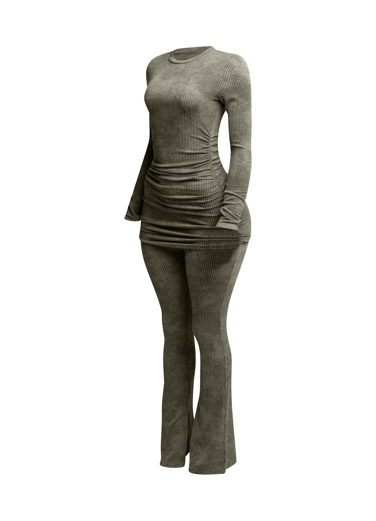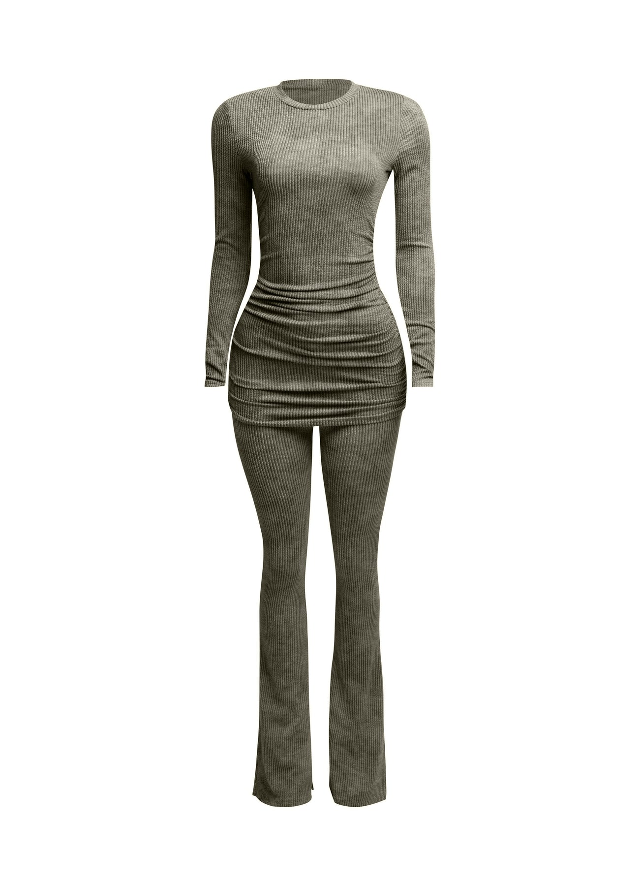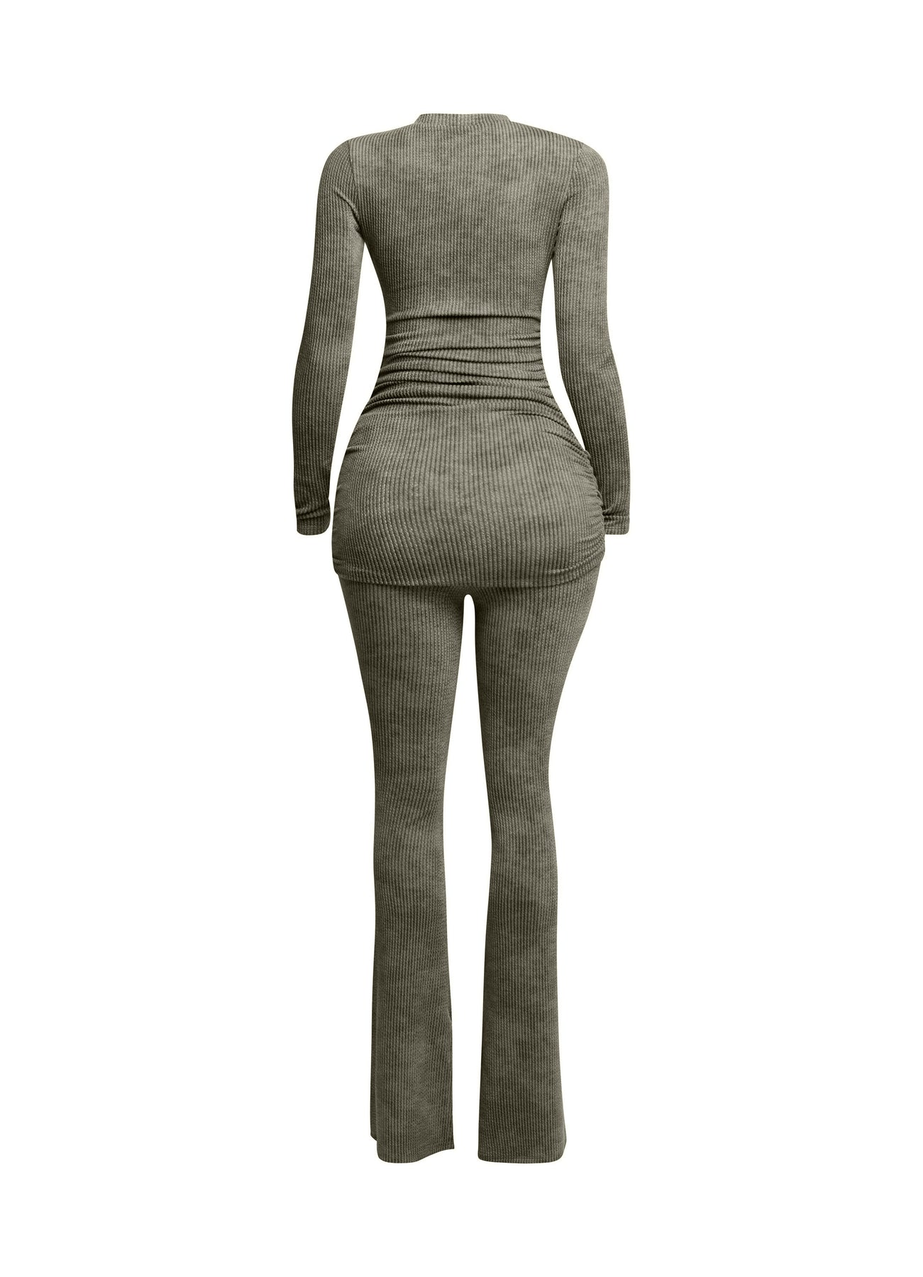 Washed rib round neck long sleeve & pants set