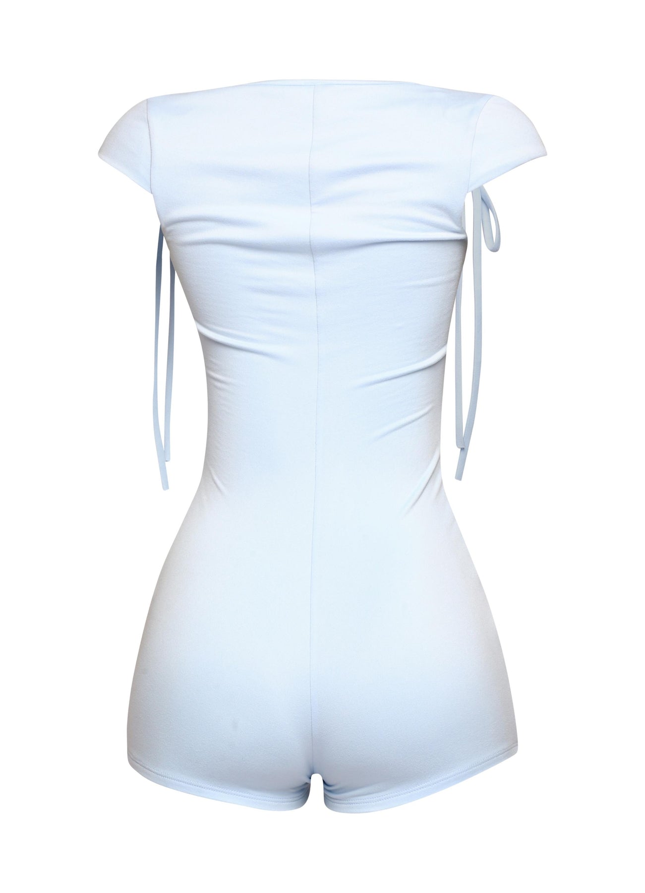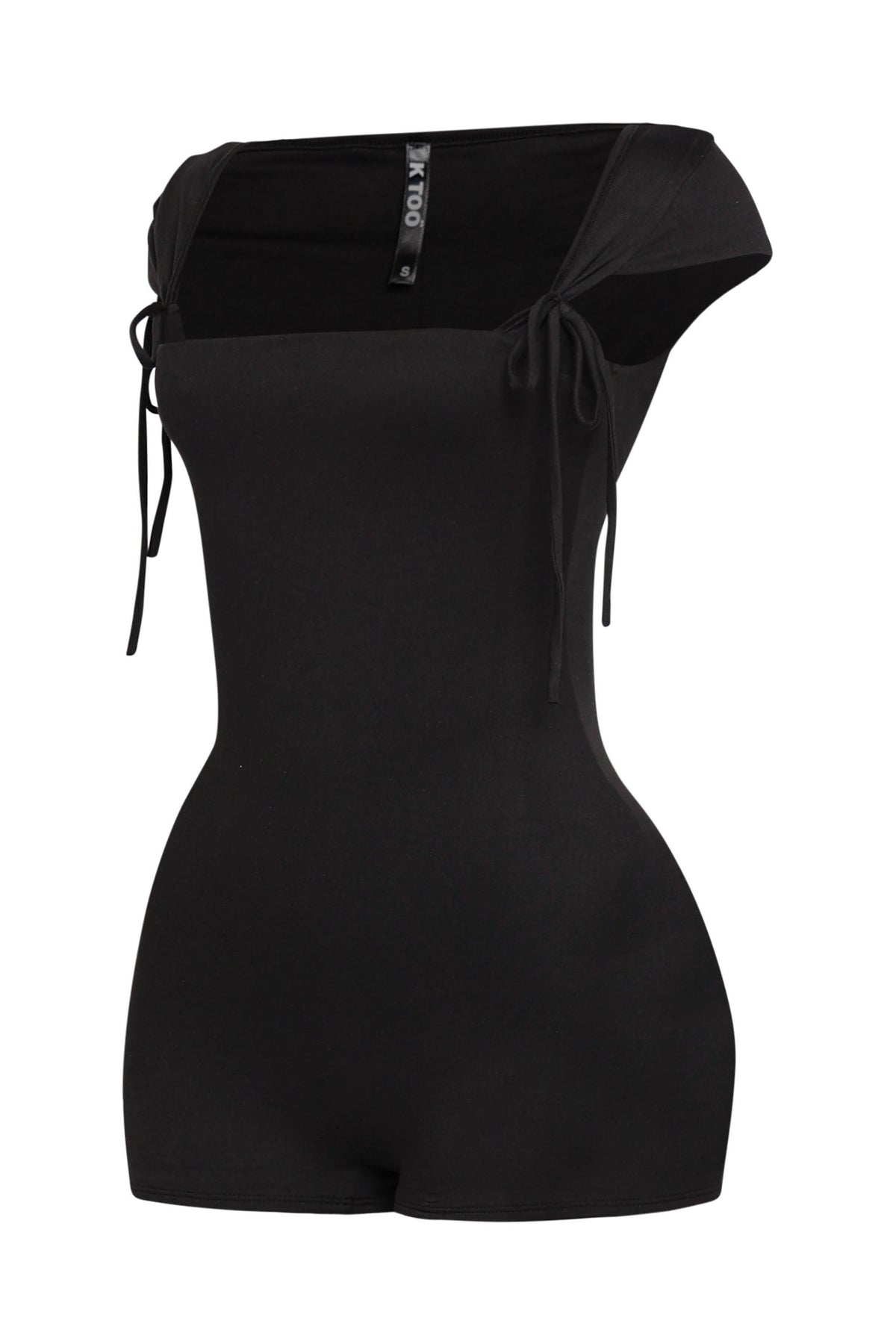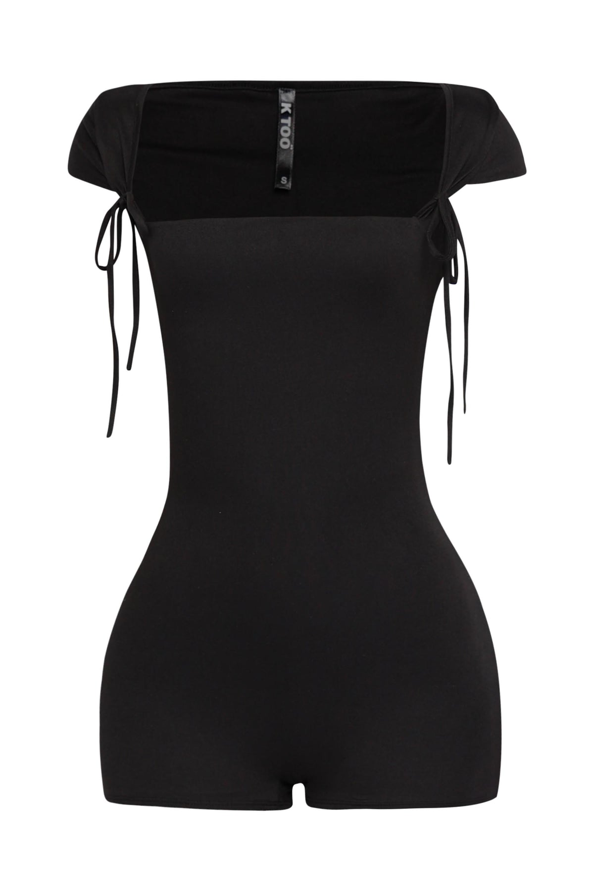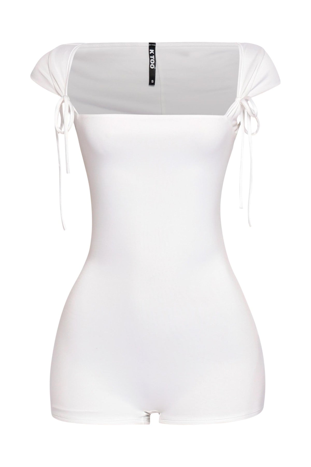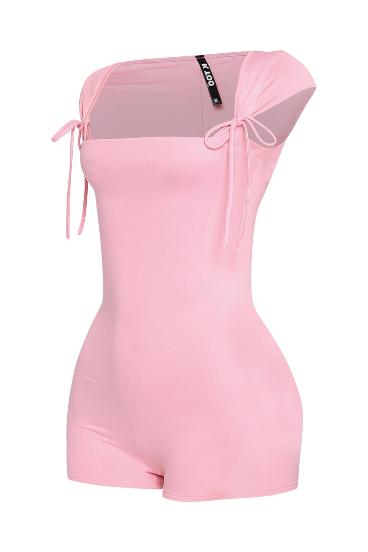 The romper your summer crush will never forget. This ultra-fitted one-piece serves body with a sculpted silhouette, wide square neckline, and playful cap sleeves detailed with adjustable tie straps. It hugs curves in all the right places thanks to its super stretchy fabric blend, and the 2" inseam keeps the vibe hot and leggy. Whether you're brunching, bar hopping, or catching attention on the ‘gram, this romper brings the heat.