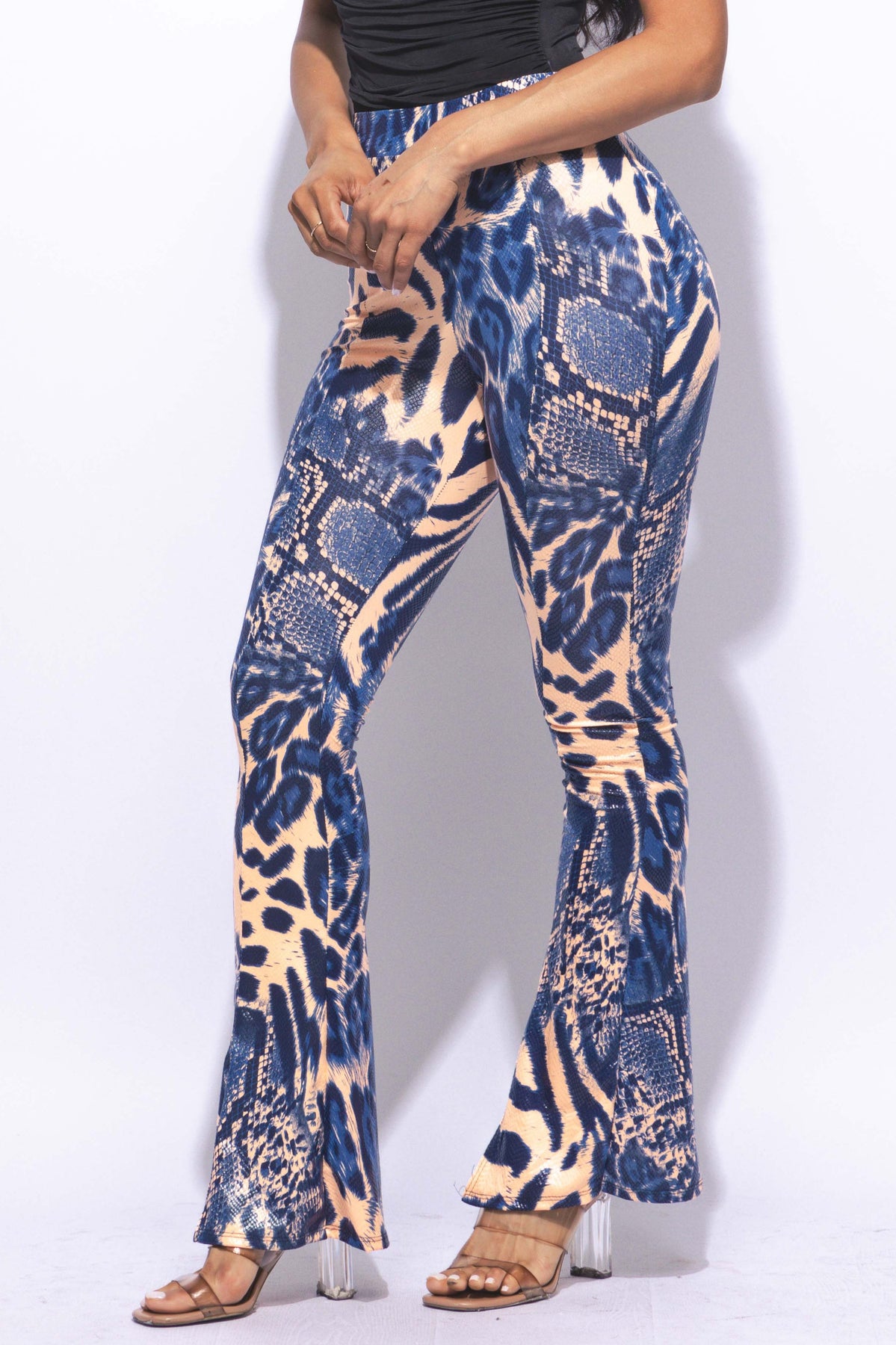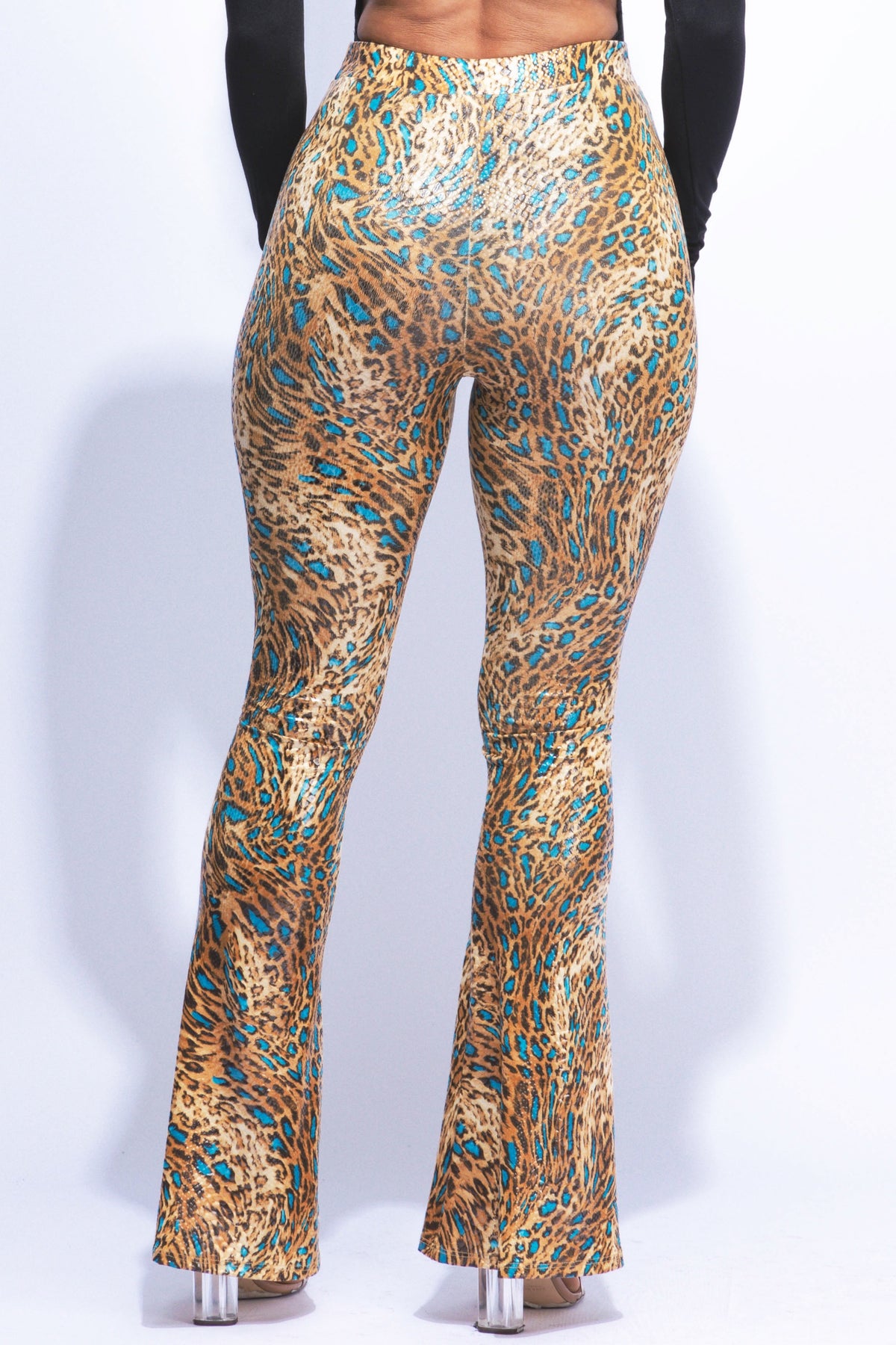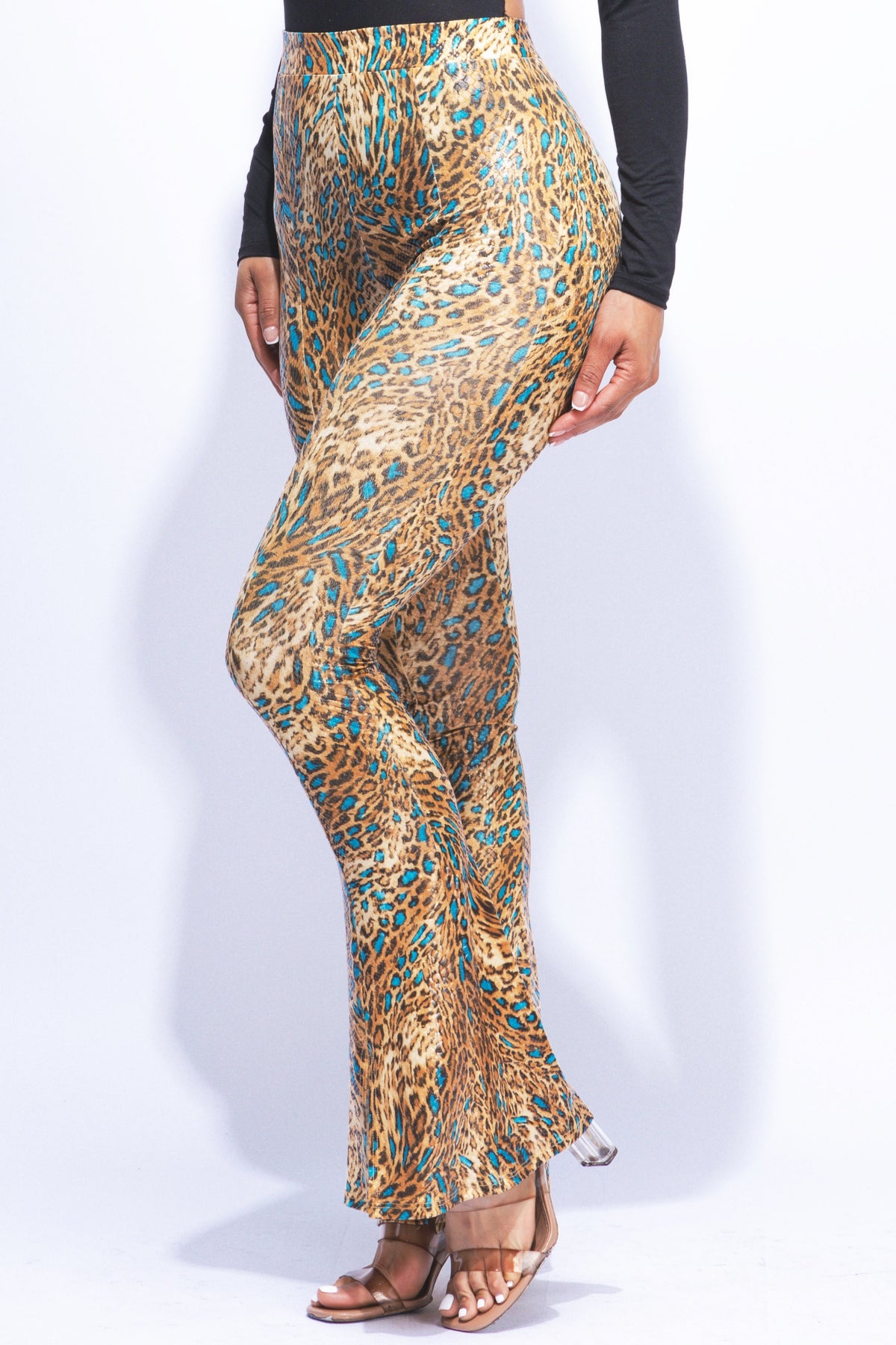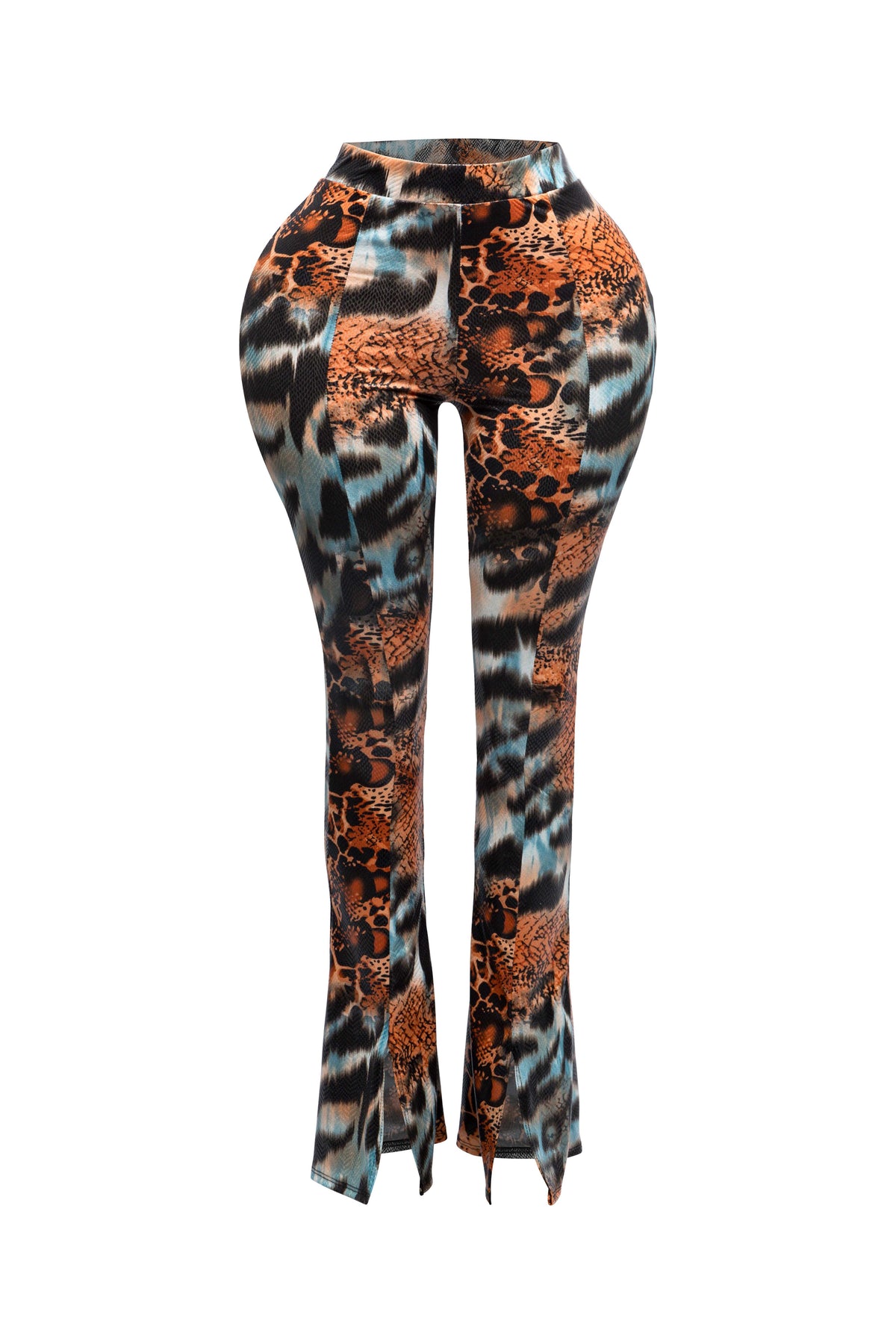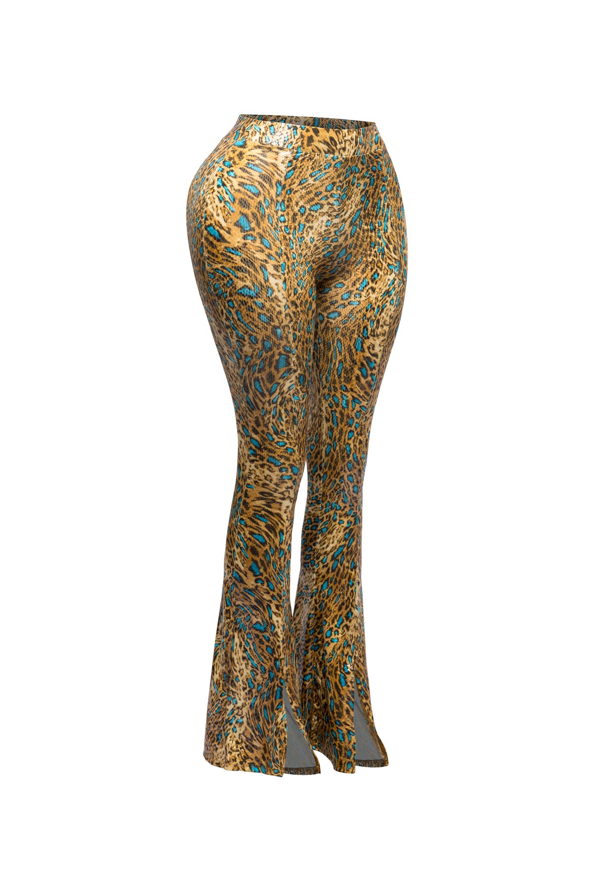 Step up your fashion game with our Foiled Animal Printed Slit Hem Flared Pants. These stylish pants feature a striking animal print and a trendy slit hem, combined with a flared design for a retro-chic look. Perfect for adding a bold statement to any outfit.