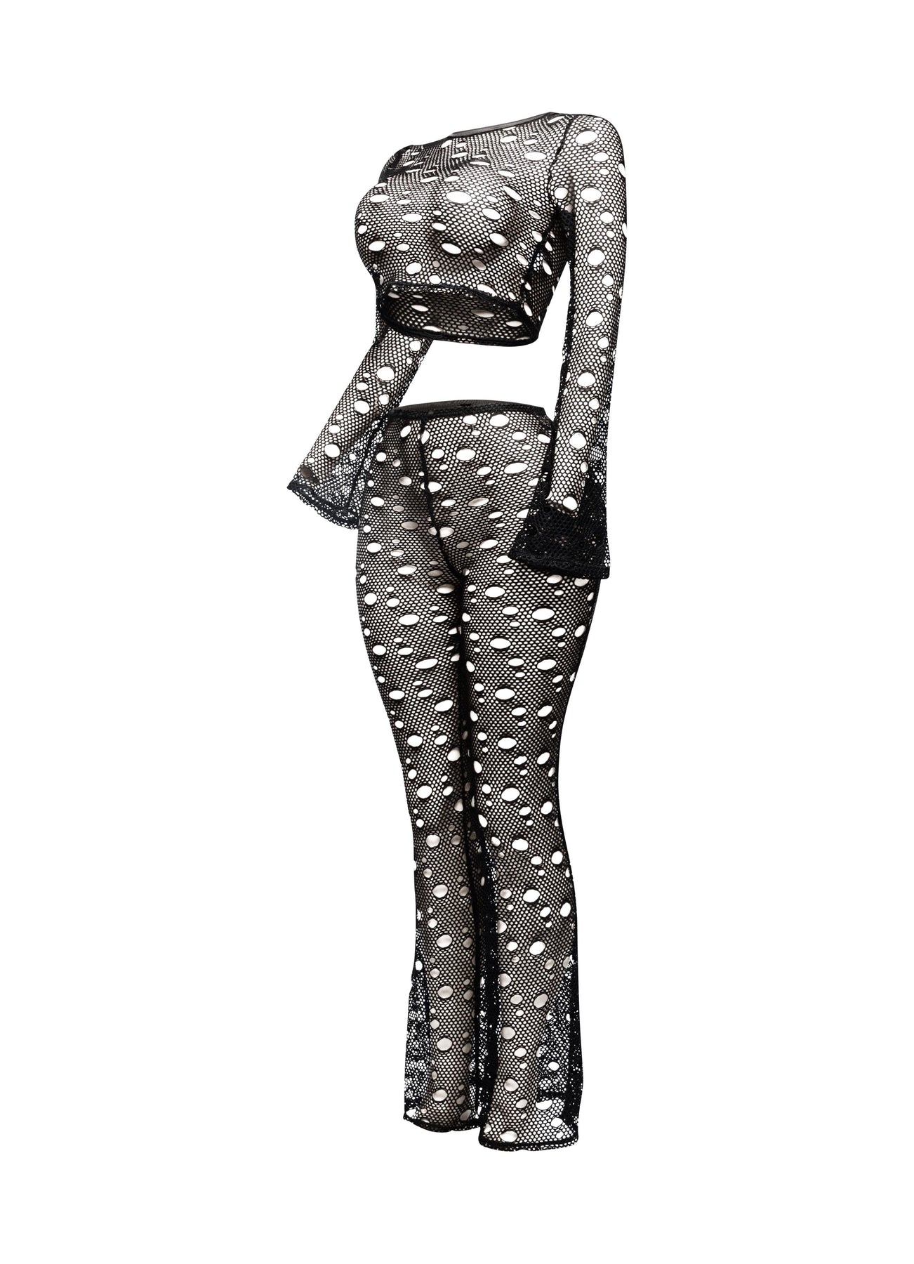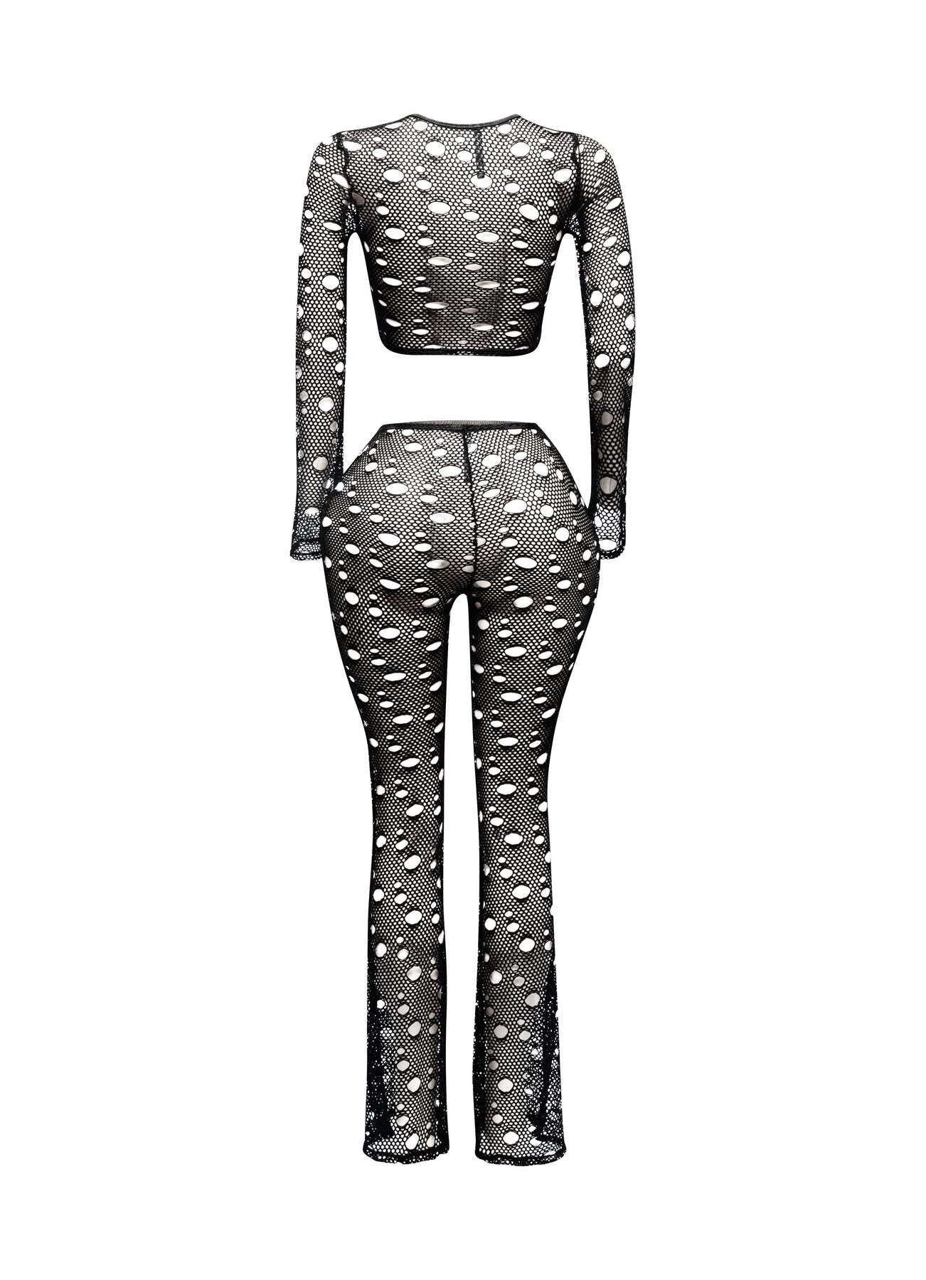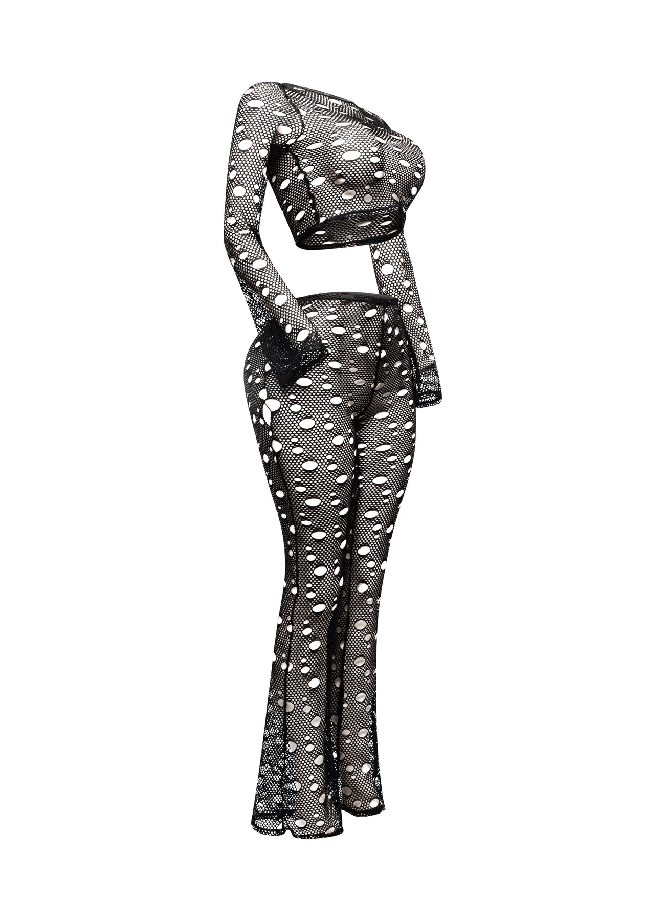 Step into the spotlight with our Hole Fishnet Crop Top & Pants Set. This seductive ensemble features a bold fishnet design with strategically placed cut-outs, ensuring you grab attention wherever you go. The set includes a long-sleeve crop top and matching pants that offer both comfort and style. Perfect for nightlife, music festivals, or any occasion where you want to make a bold fashion statement