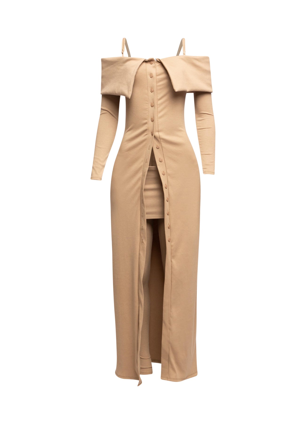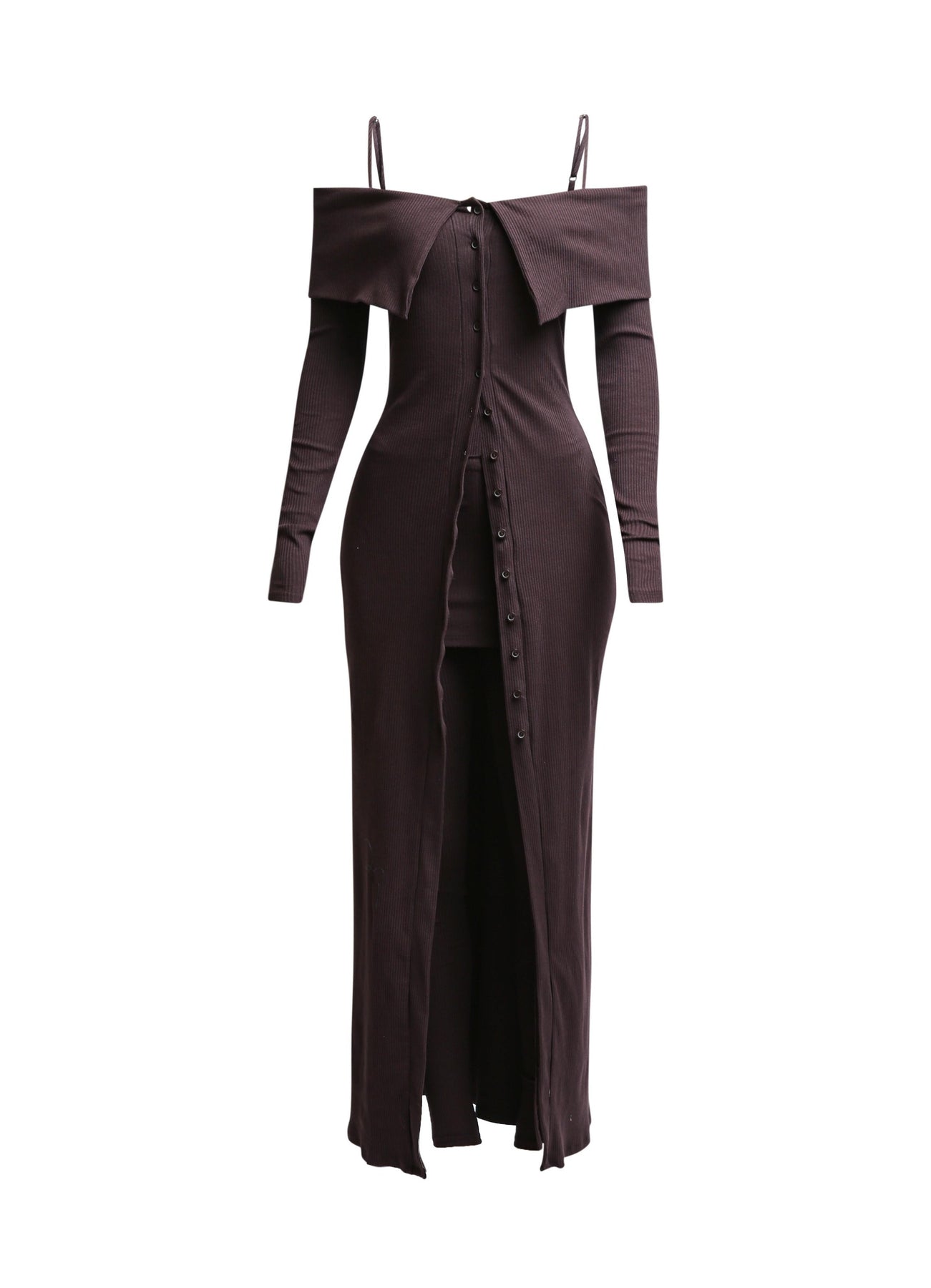 Long length spaghetti strap and off shoulder top & skirt leggings set