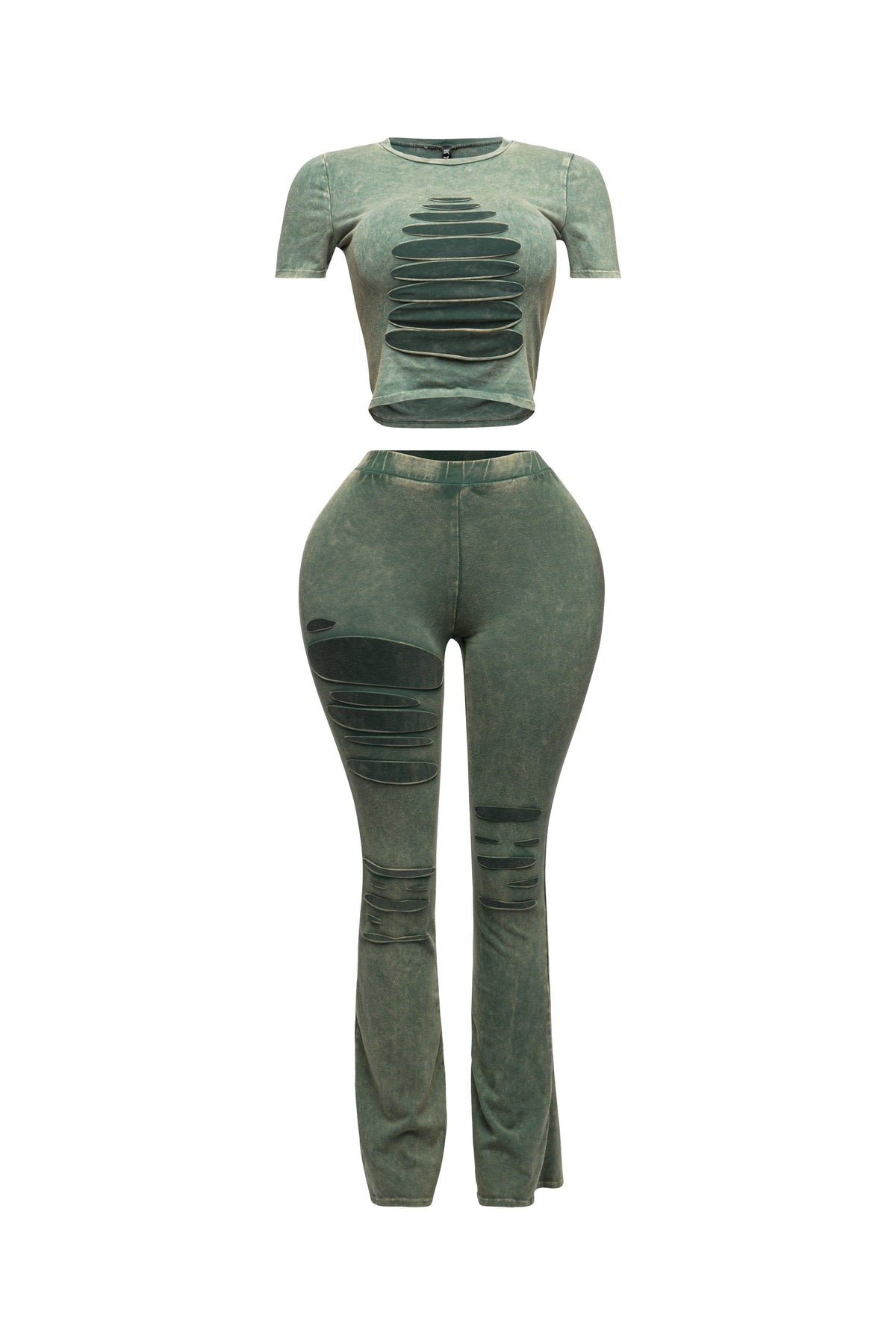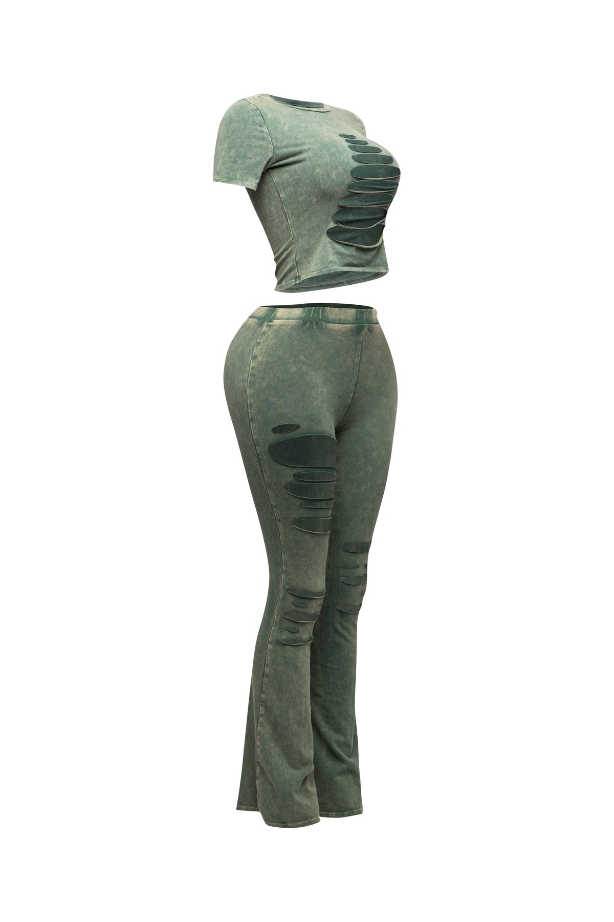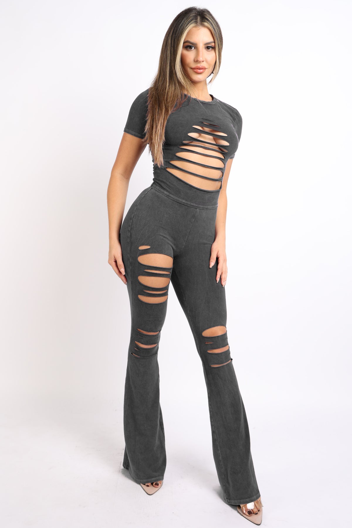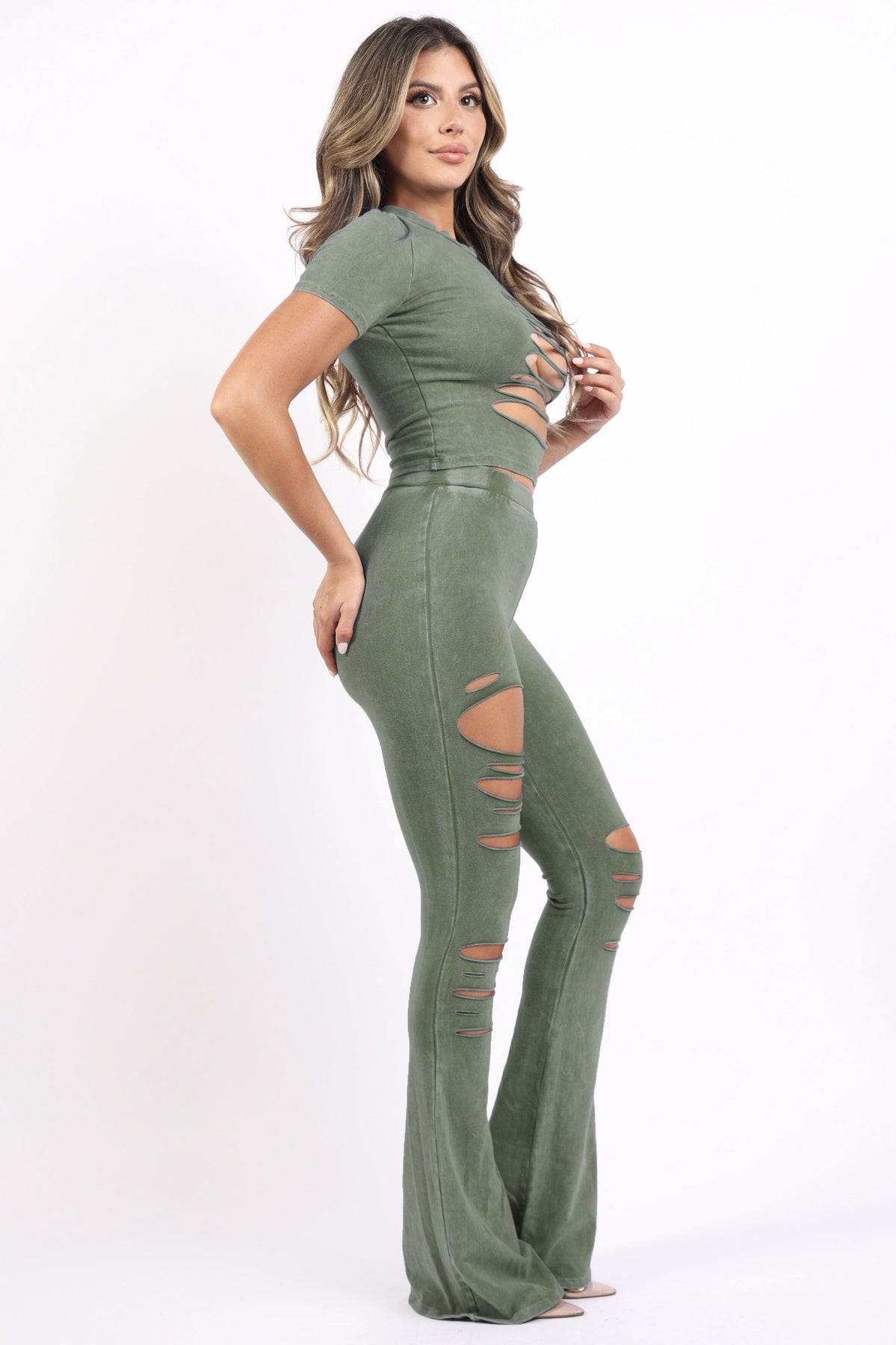 Effortless style meets unique detailing in our mineral wash set. Die-cut accents add a touch of edge to this chic and comfortable ensemble.