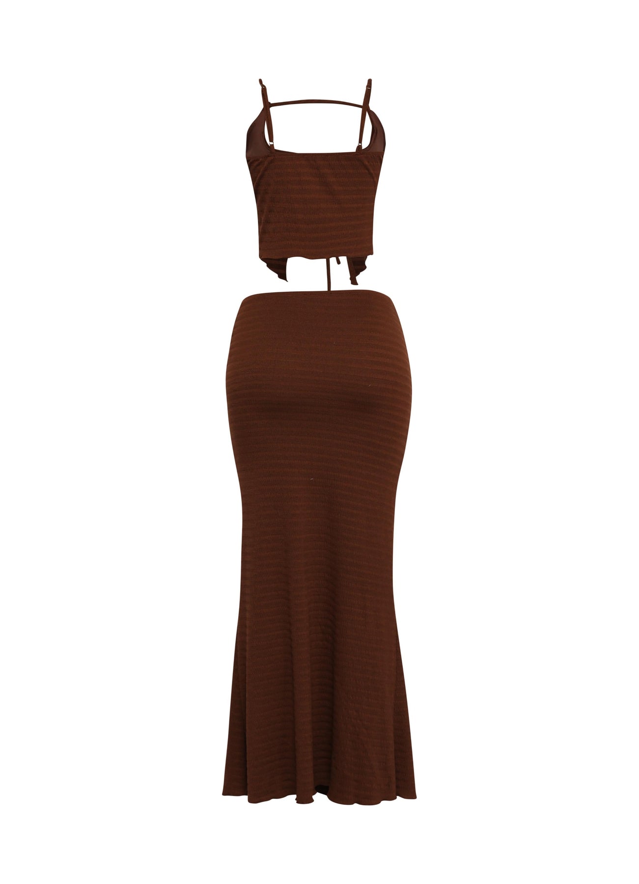 Crave Control Smocked Tie Top & Maxi Skirt Set.