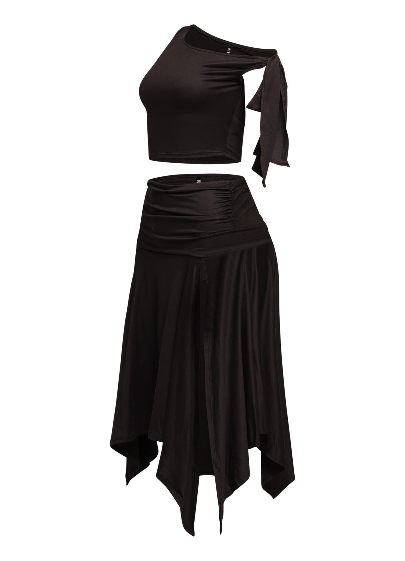 One shoulder tied detailed skirt set