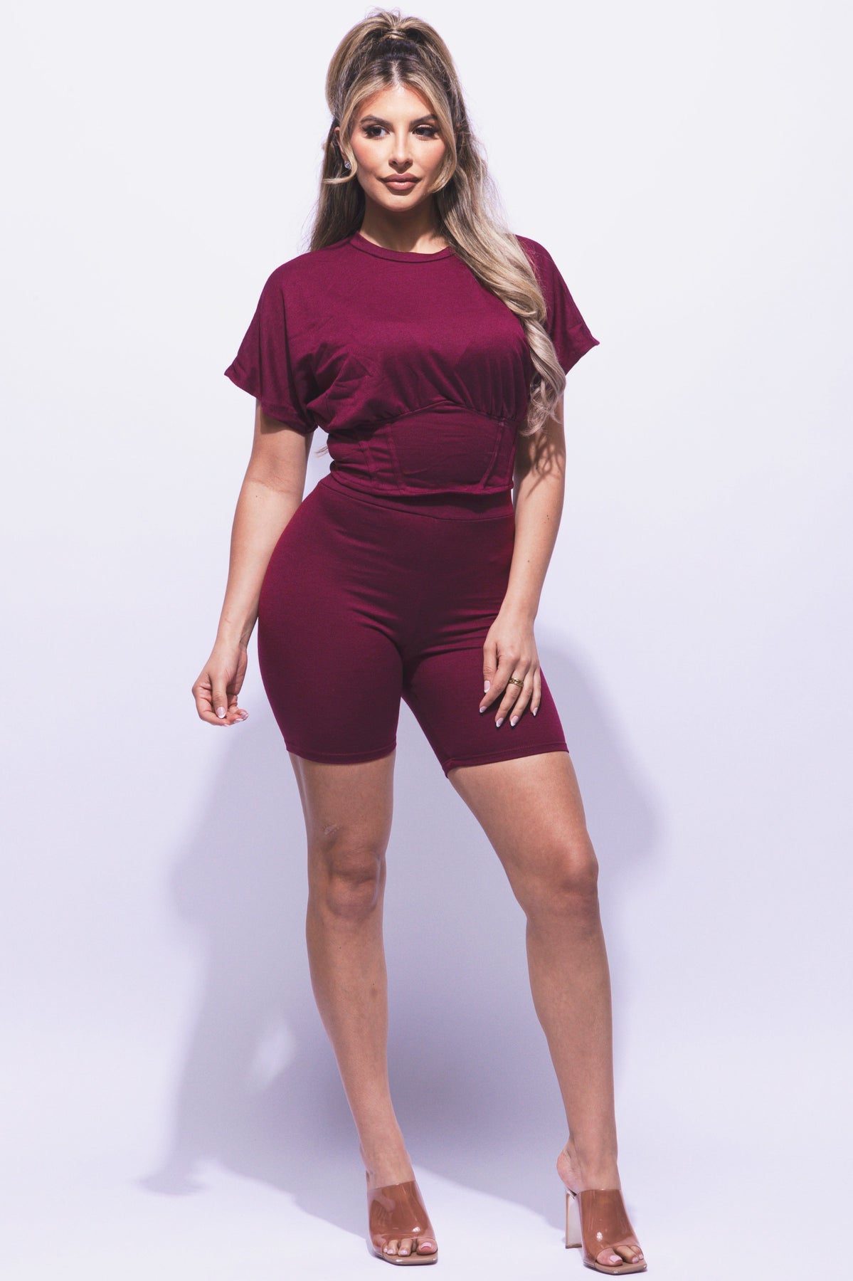 Introducing our Corseted Top and Biker Set - a bold and captivating ensemble designed to make a statement. The corseted top features structured boning and a figure-enhancing silhouette, exuding confidence and allure without the lace-up detailing.