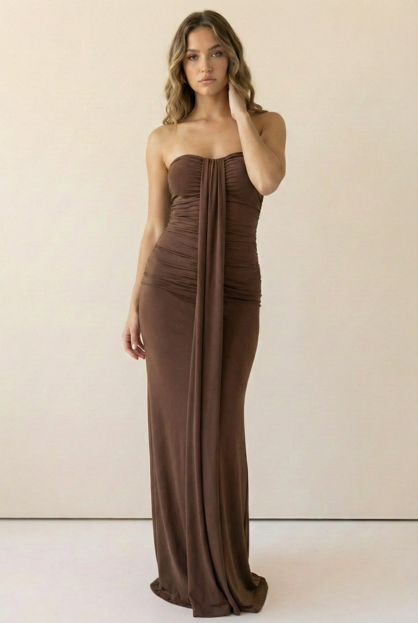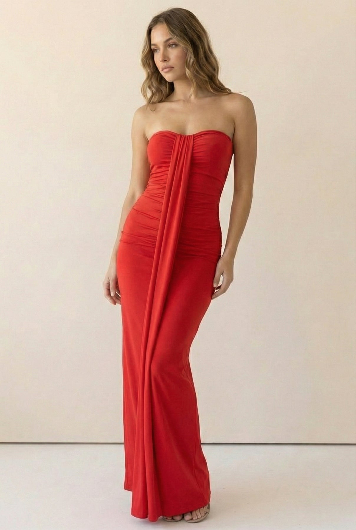 Soft Drape Strapless Maxi Dress-Red