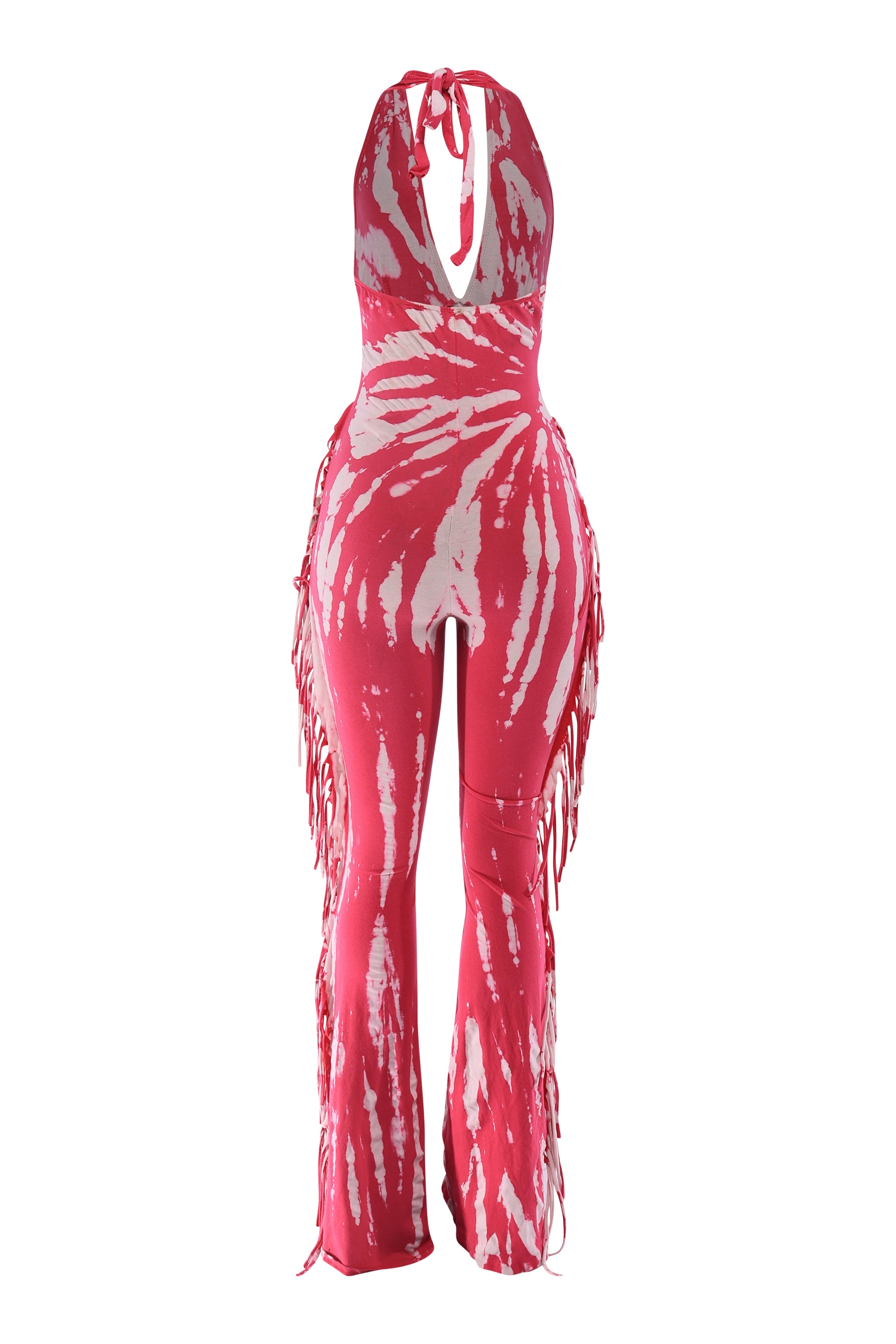 Fringe Frequency Tie Dye Halter Jumpsuit..