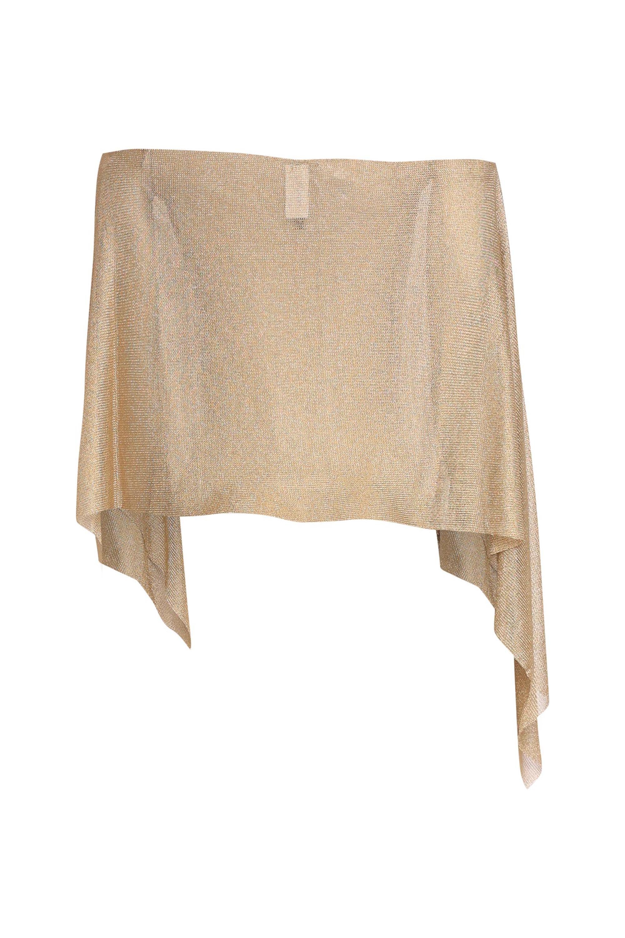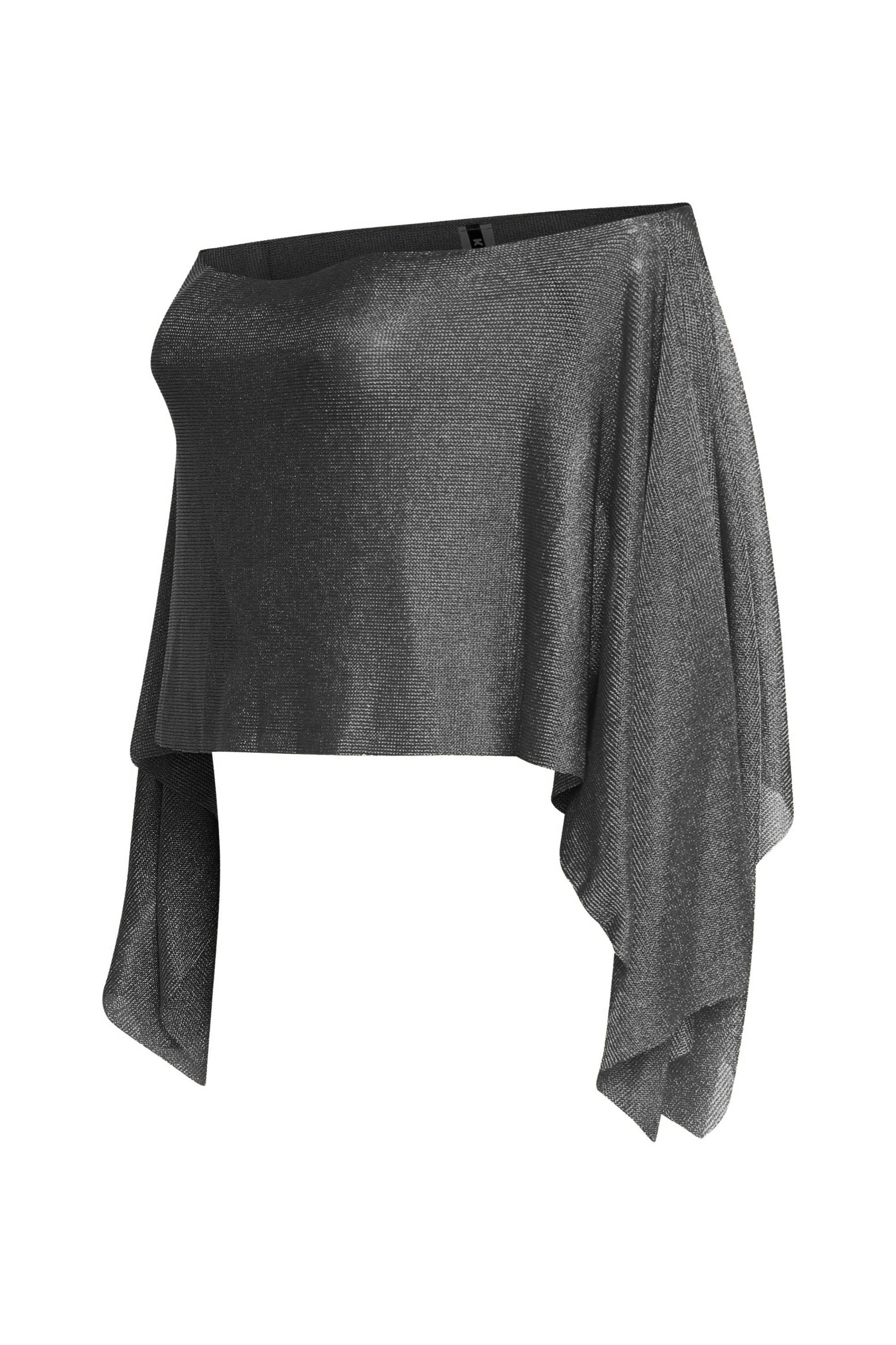 • Off-shoulder glitter knit top with asymmetrical long sleeves