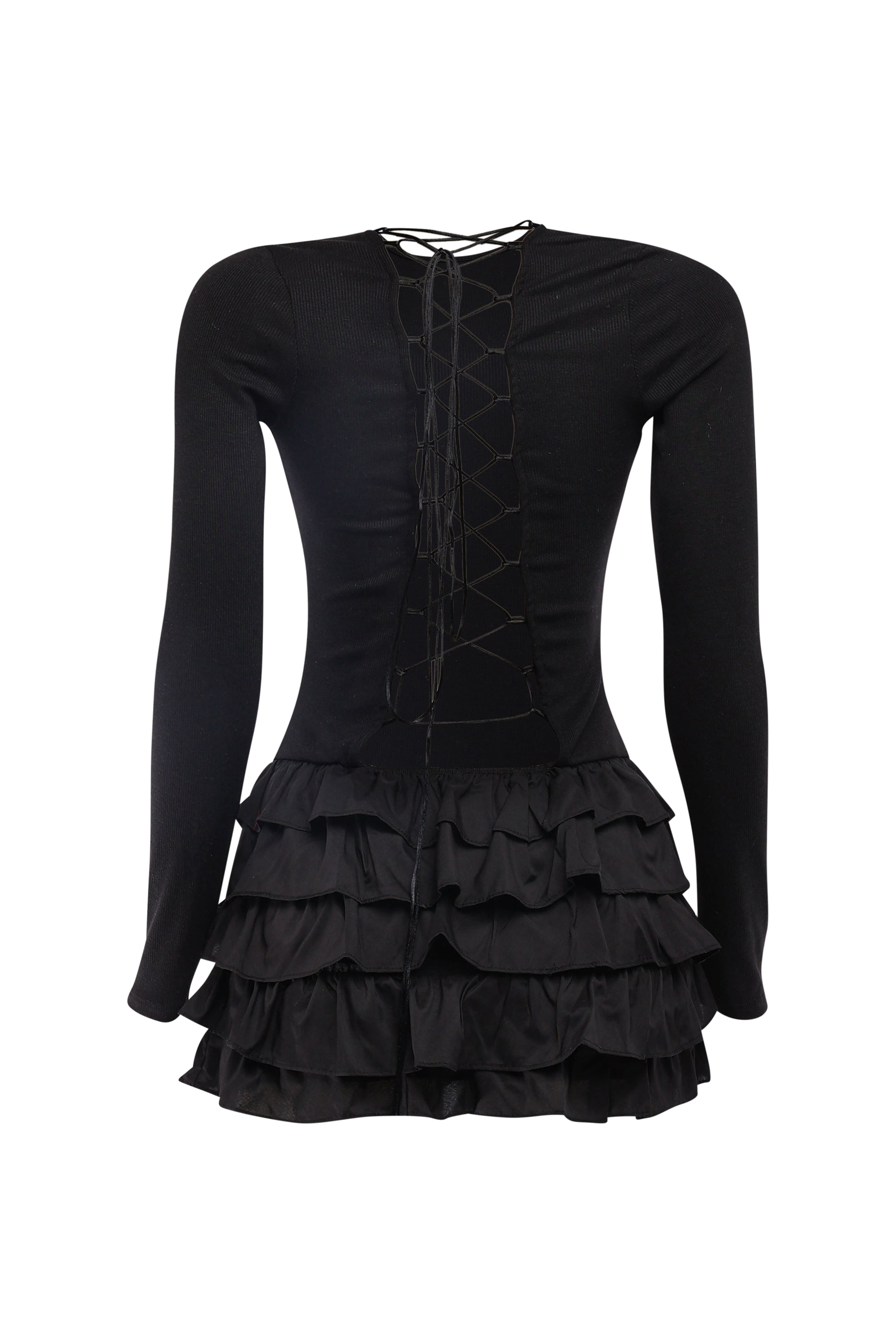 Bring a touch of romance to your wardrobe with the Moonlit Charm Lace-Up Mini Dress. Featuring a round neckline, long sleeves, and a playful flared hem, this dress offers a chic balance of elegance and flirtation. The lace-up back detail adds a daring twist, while the slim fit silhouette flatters your curves. Perfect for parties, date nights, or evening outings.