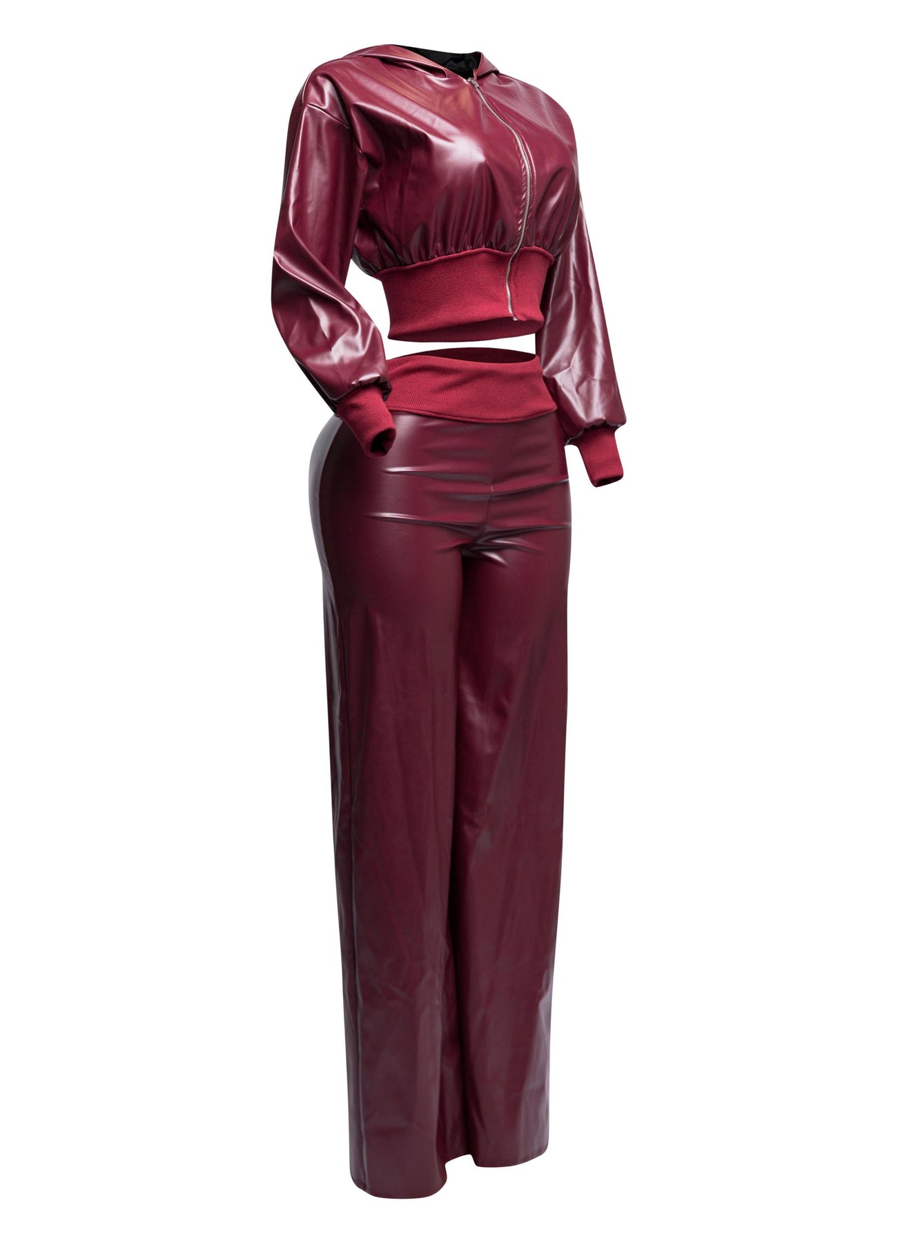 PU hoodie jacket & wide leg pants set