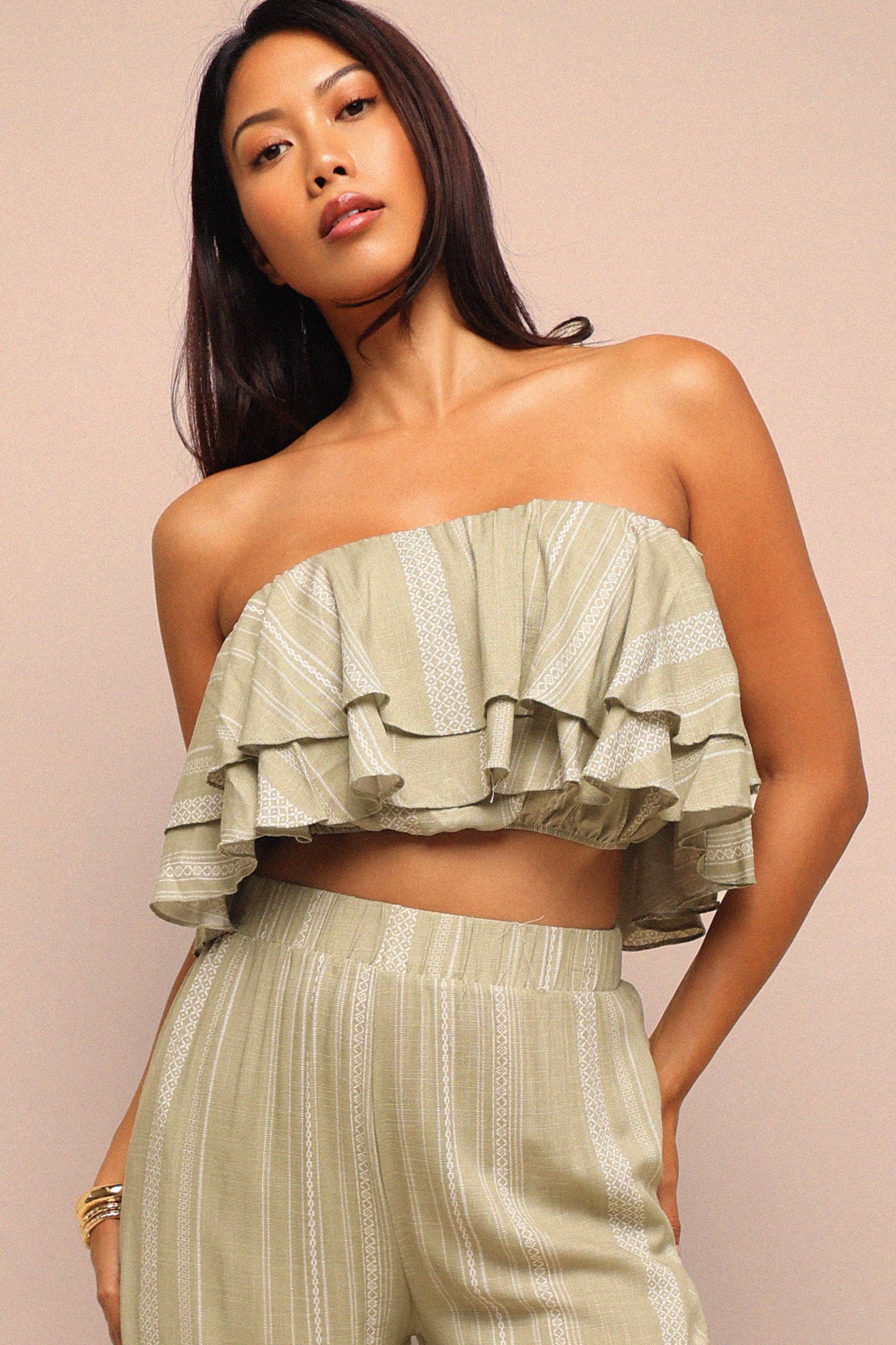 This dreamy two-piece set is your instant ticket to effortless vacay glam. Featuring a ruffled bandeau-style tube top and ultra-flowy high-waisted wide leg pants, this combo brings all the boho-chic energy with none of the fuss. Designed in softly printed rayon with an easy stretch fit, it's lightweight, breezy, and ready to turn heads—whether you're beachside or brunch-bound.