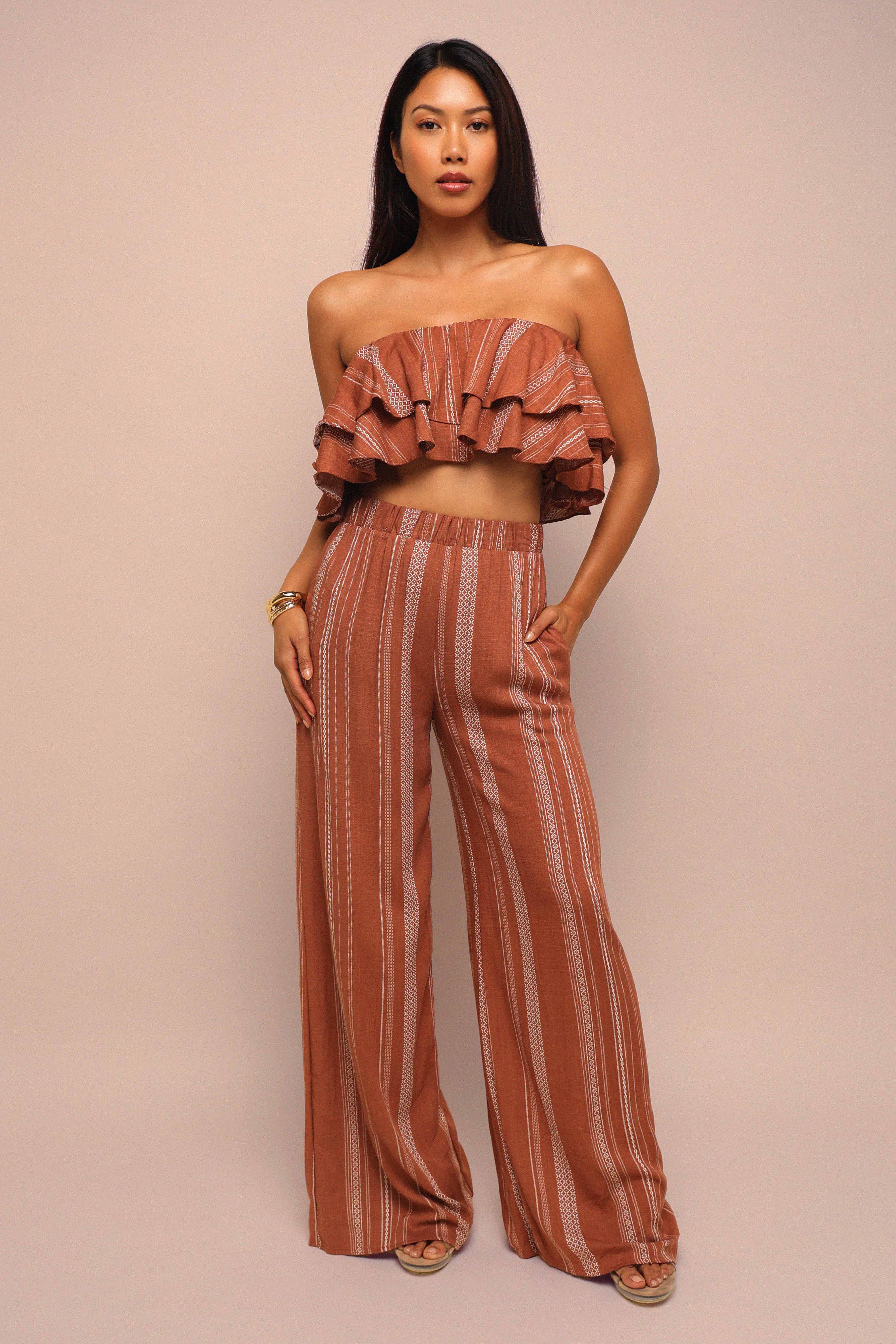 Sunset Flare Ruffle Tube & Wide Leg Set.