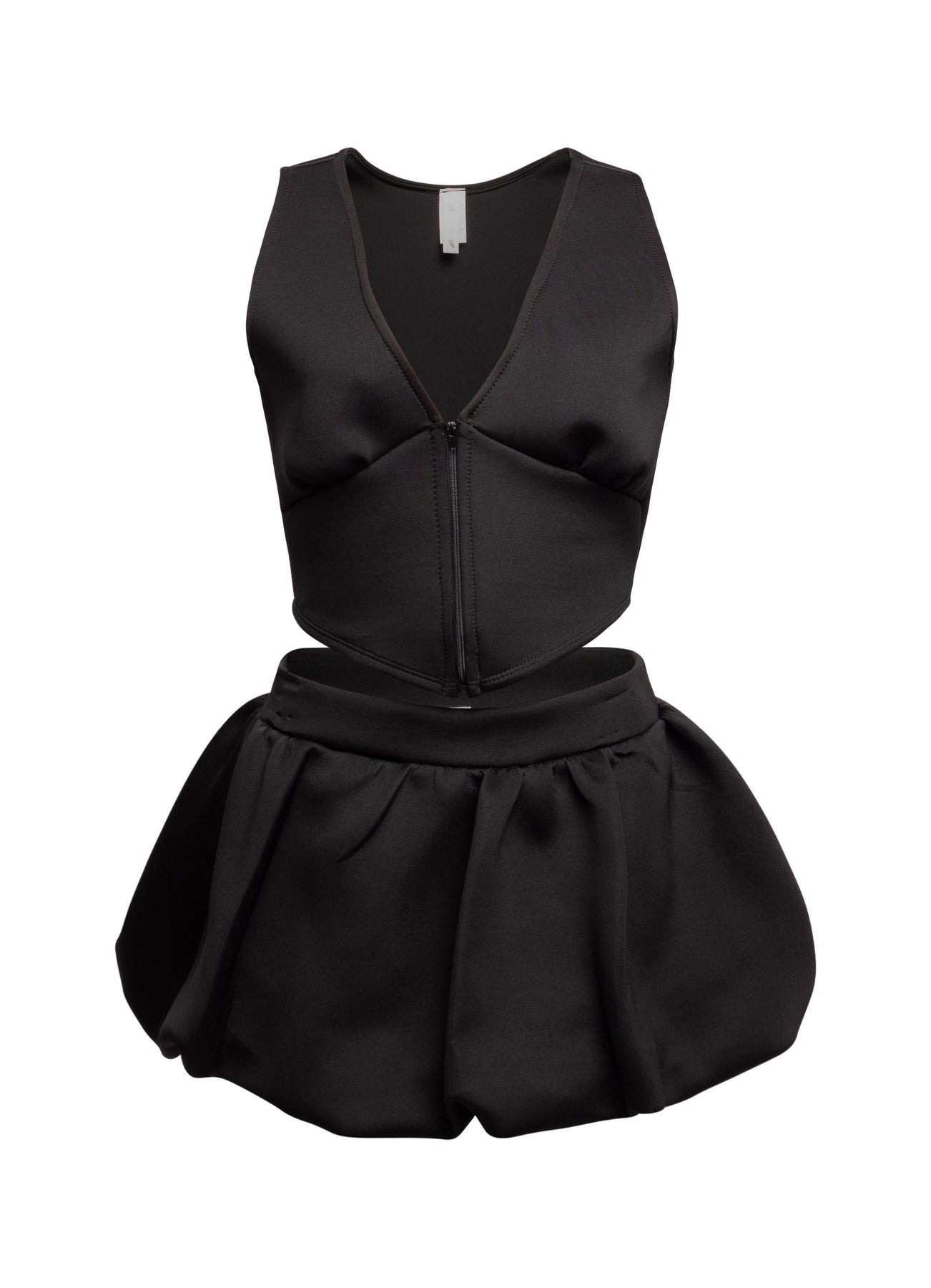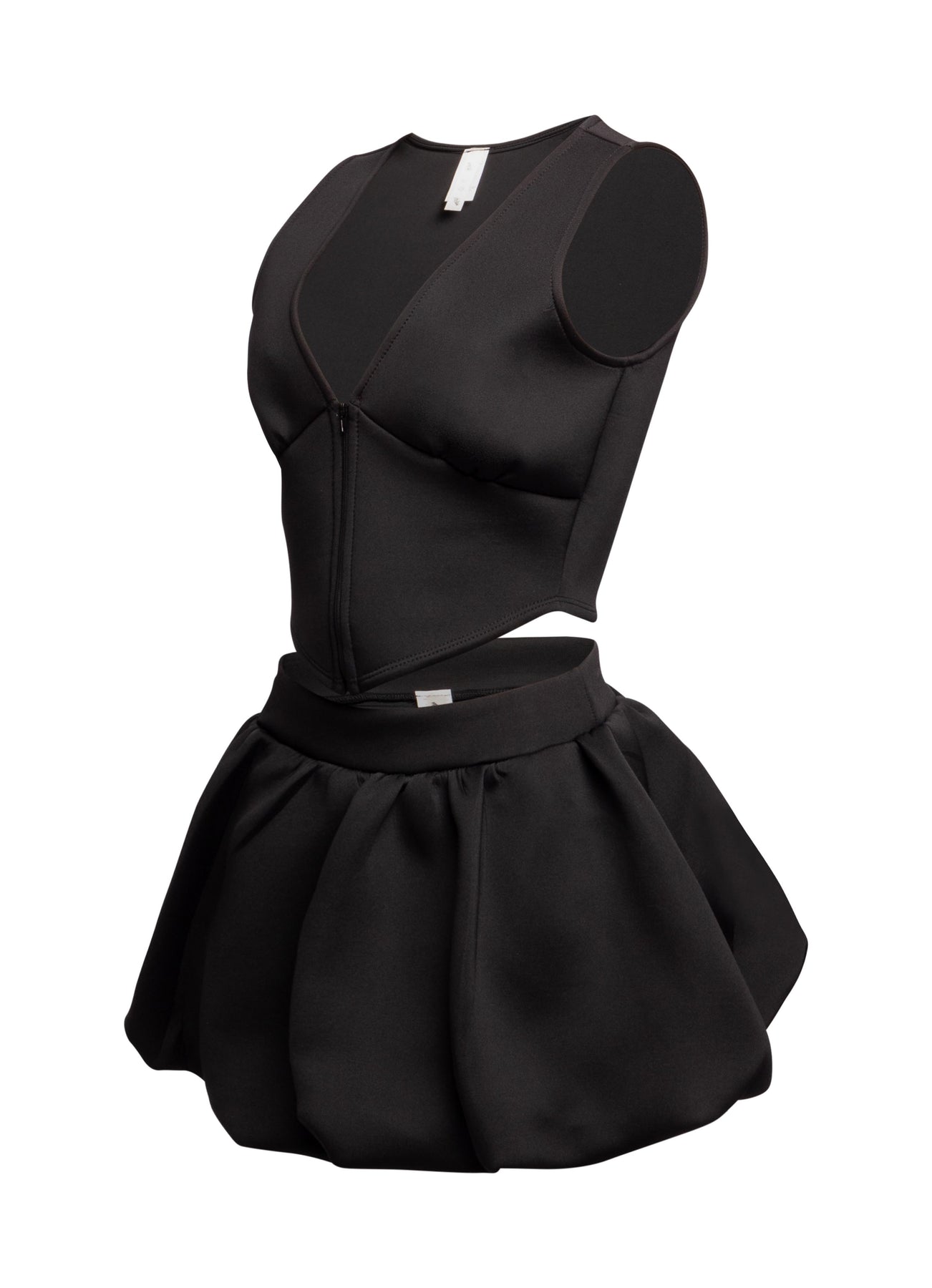 - Structured cropped vest with a deep V-neckline and zip closure